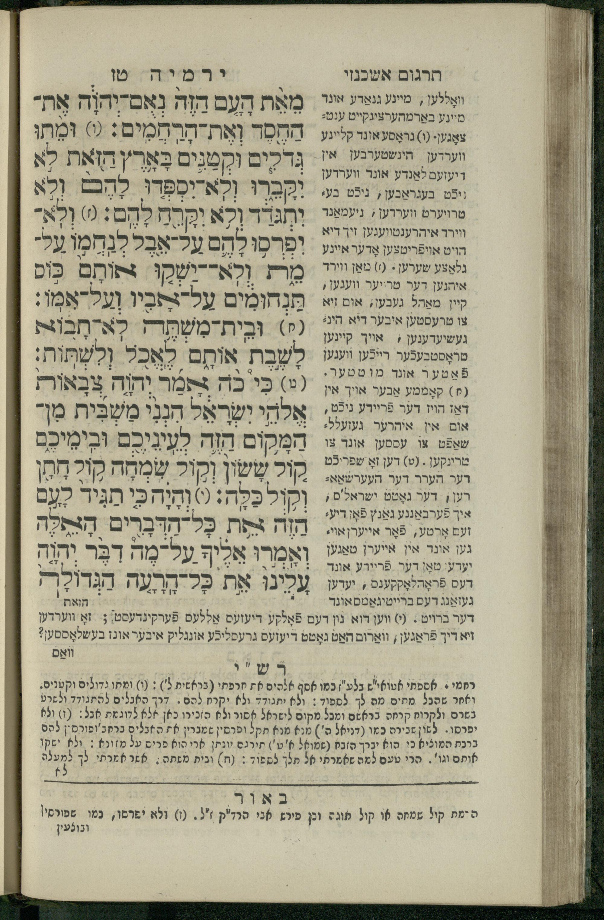 11 (1836) Sefer Yirmeyah / meturgam u-mevoʾar me-ḥadash me-et ha-Rav m.h. Shelomoh ben mo.h. Daṿid Zakhs (a.b.d. di-ḳ.ḳ. Likhṭenshṭadṭ u-gelilot Elenbogen ṿe-Zaʾats be-medinat Behmen) ṿe-nilṿah elaṿ Perush Rashi ṿe-haʿtaḳah u-veʾur kol milot be-laʿaz me-et ha-madpis Mosheh ha-Leṿi Landa11 (1836) ספר ירמיה / מתורגם ומבואר מחדש מאת הרב מ"ה שלמה בן מו"ה דוד זאכס (אב"ד דק"ק ליכטענשטאדט וגלילות עלנבאגען וזאאץ במדינת בעהמען) ונלוה אליו פירוש רש''י והעתקה ובאור כל מלות בלע''ז מאת המדפיס משה הלוי לנדא