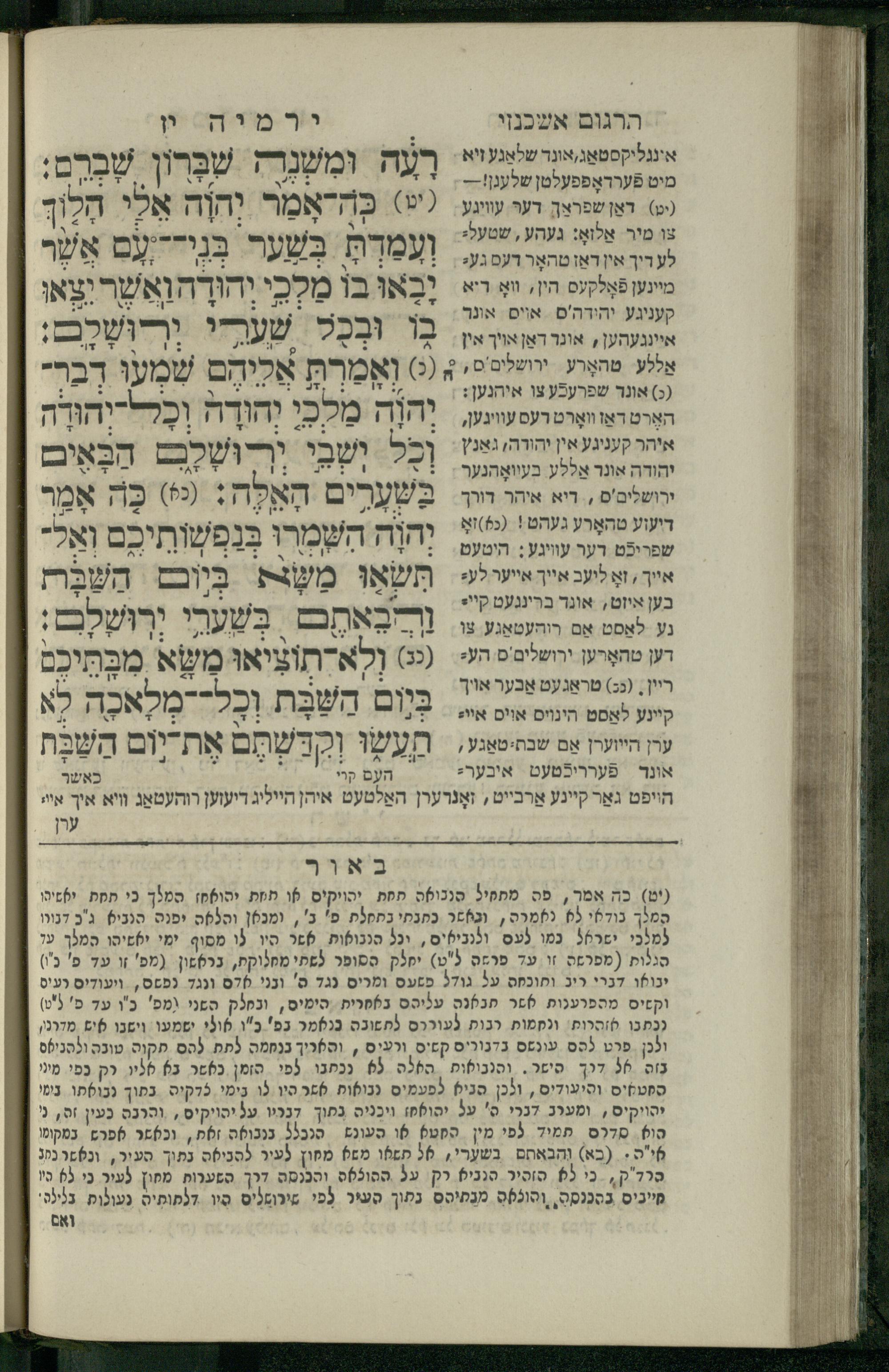 11 (1836) Sefer Yirmeyah / meturgam u-mevoʾar me-ḥadash me-et ha-Rav m.h. Shelomoh ben mo.h. Daṿid Zakhs (a.b.d. di-ḳ.ḳ. Likhṭenshṭadṭ u-gelilot Elenbogen ṿe-Zaʾats be-medinat Behmen) ṿe-nilṿah elaṿ Perush Rashi ṿe-haʿtaḳah u-veʾur kol milot be-laʿaz me-et ha-madpis Mosheh ha-Leṿi Landa11 (1836) ספר ירמיה / מתורגם ומבואר מחדש מאת הרב מ"ה שלמה בן מו"ה דוד זאכס (אב"ד דק"ק ליכטענשטאדט וגלילות עלנבאגען וזאאץ במדינת בעהמען) ונלוה אליו פירוש רש''י והעתקה ובאור כל מלות בלע''ז מאת המדפיס משה הלוי לנדא