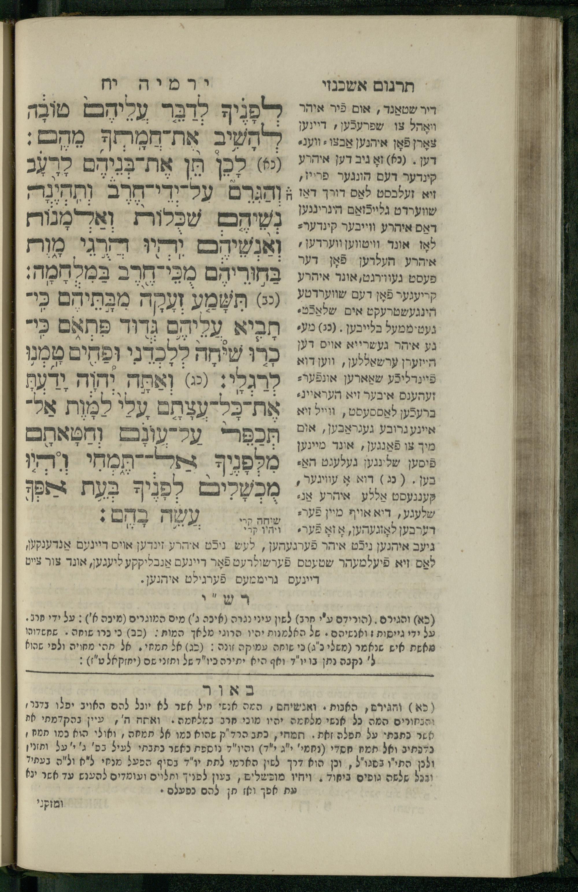 11 (1836) Sefer Yirmeyah / meturgam u-mevoʾar me-ḥadash me-et ha-Rav m.h. Shelomoh ben mo.h. Daṿid Zakhs (a.b.d. di-ḳ.ḳ. Likhṭenshṭadṭ u-gelilot Elenbogen ṿe-Zaʾats be-medinat Behmen) ṿe-nilṿah elaṿ Perush Rashi ṿe-haʿtaḳah u-veʾur kol milot be-laʿaz me-et ha-madpis Mosheh ha-Leṿi Landa11 (1836) ספר ירמיה / מתורגם ומבואר מחדש מאת הרב מ"ה שלמה בן מו"ה דוד זאכס (אב"ד דק"ק ליכטענשטאדט וגלילות עלנבאגען וזאאץ במדינת בעהמען) ונלוה אליו פירוש רש''י והעתקה ובאור כל מלות בלע''ז מאת המדפיס משה הלוי לנדא