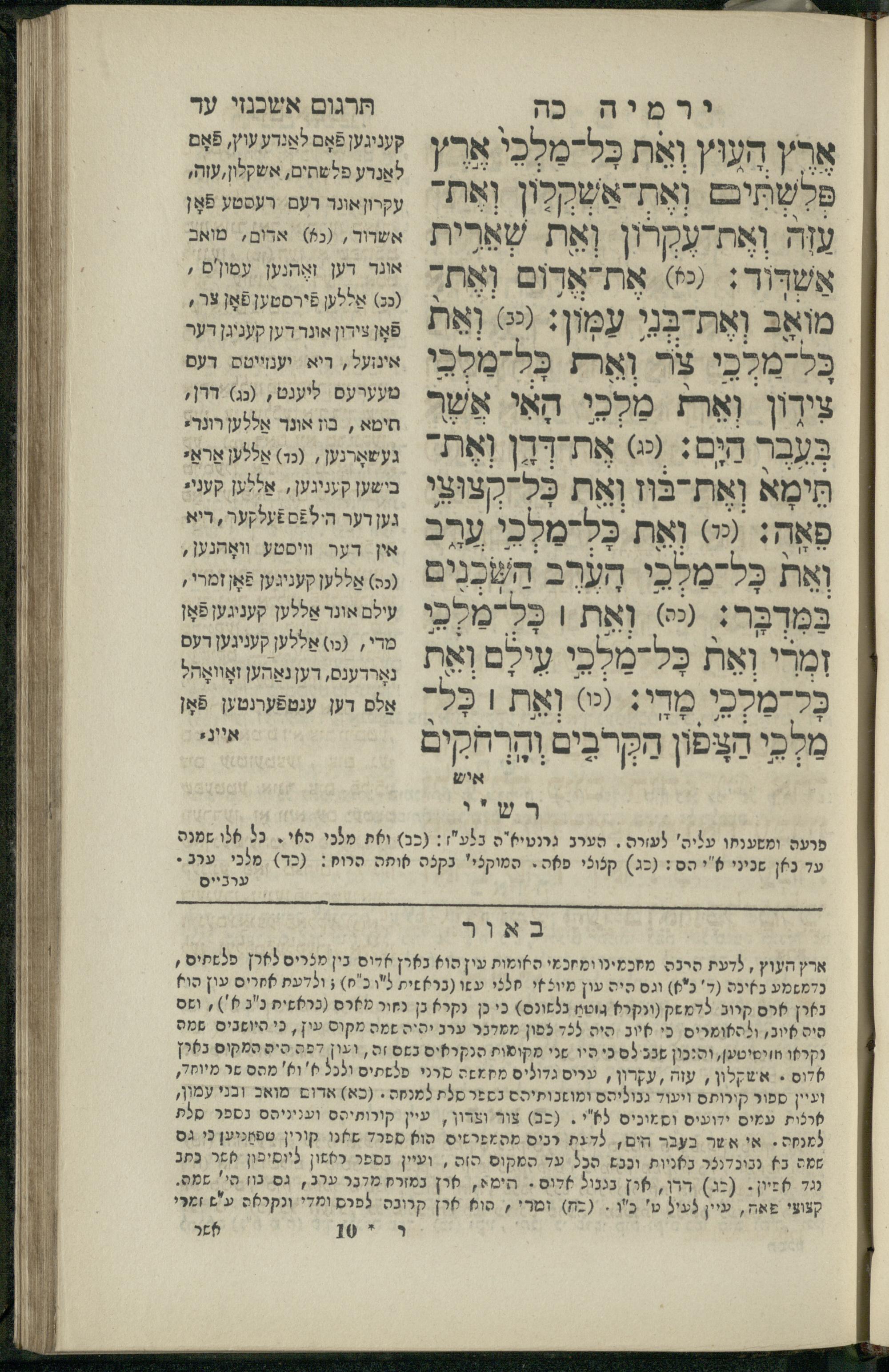11 (1836) Sefer Yirmeyah / meturgam u-mevoʾar me-ḥadash me-et ha-Rav m.h. Shelomoh ben mo.h. Daṿid Zakhs (a.b.d. di-ḳ.ḳ. Likhṭenshṭadṭ u-gelilot Elenbogen ṿe-Zaʾats be-medinat Behmen) ṿe-nilṿah elaṿ Perush Rashi ṿe-haʿtaḳah u-veʾur kol milot be-laʿaz me-et ha-madpis Mosheh ha-Leṿi Landa11 (1836) ספר ירמיה / מתורגם ומבואר מחדש מאת הרב מ"ה שלמה בן מו"ה דוד זאכס (אב"ד דק"ק ליכטענשטאדט וגלילות עלנבאגען וזאאץ במדינת בעהמען) ונלוה אליו פירוש רש''י והעתקה ובאור כל מלות בלע''ז מאת המדפיס משה הלוי לנדא