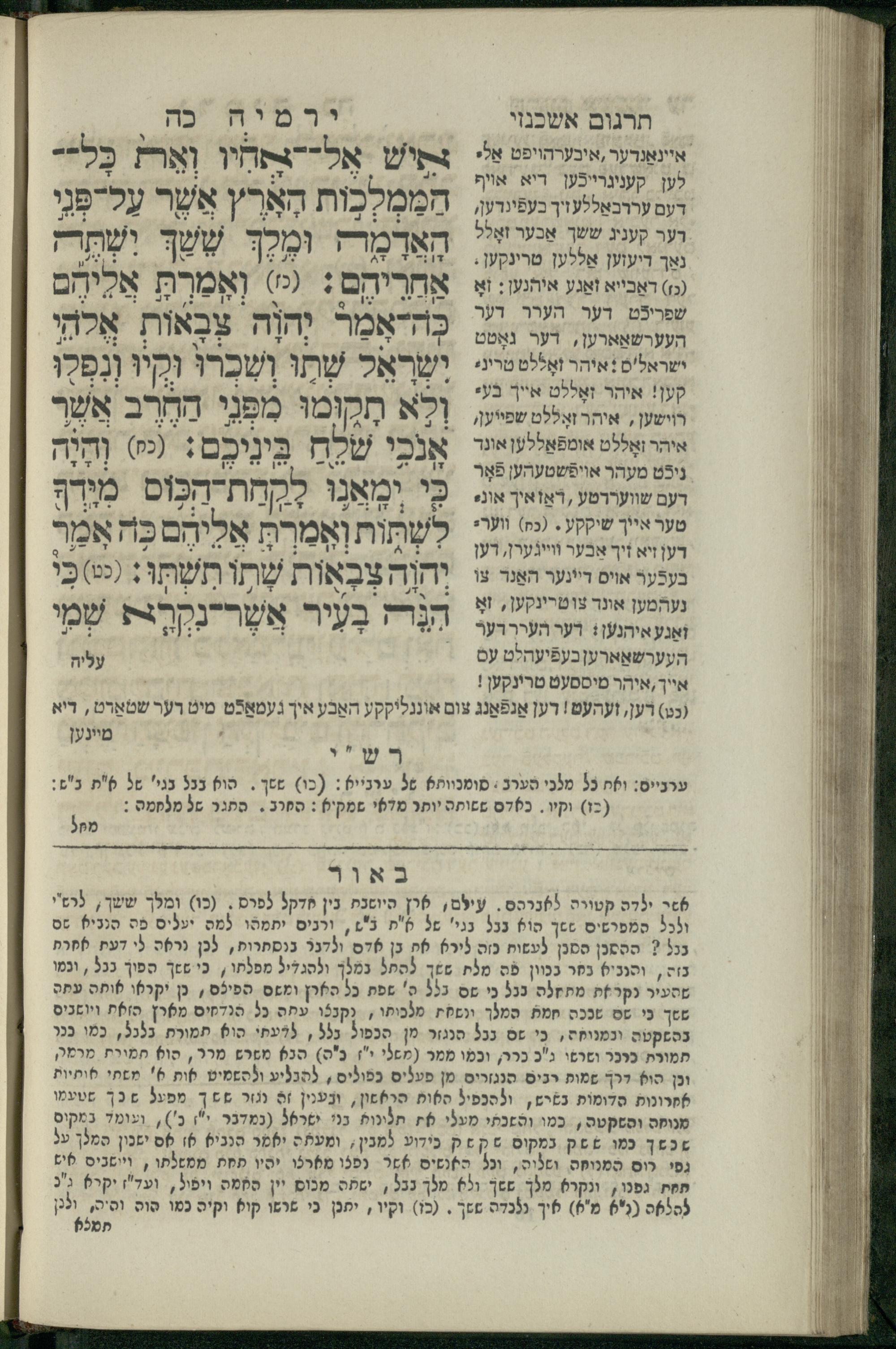 11 (1836) Sefer Yirmeyah / meturgam u-mevoʾar me-ḥadash me-et ha-Rav m.h. Shelomoh ben mo.h. Daṿid Zakhs (a.b.d. di-ḳ.ḳ. Likhṭenshṭadṭ u-gelilot Elenbogen ṿe-Zaʾats be-medinat Behmen) ṿe-nilṿah elaṿ Perush Rashi ṿe-haʿtaḳah u-veʾur kol milot be-laʿaz me-et ha-madpis Mosheh ha-Leṿi Landa11 (1836) ספר ירמיה / מתורגם ומבואר מחדש מאת הרב מ"ה שלמה בן מו"ה דוד זאכס (אב"ד דק"ק ליכטענשטאדט וגלילות עלנבאגען וזאאץ במדינת בעהמען) ונלוה אליו פירוש רש''י והעתקה ובאור כל מלות בלע''ז מאת המדפיס משה הלוי לנדא