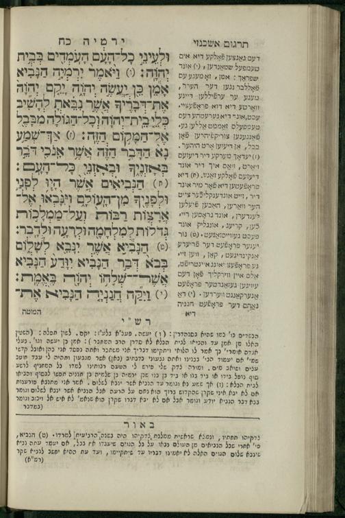 11 (1836) Sefer Yirmeyah / meturgam u-mevoʾar me-ḥadash me-et ha-Rav m.h. Shelomoh ben mo.h. Daṿid Zakhs (a.b.d. di-ḳ.ḳ. Likhṭenshṭadṭ u-gelilot Elenbogen ṿe-Zaʾats be-medinat Behmen) ṿe-nilṿah elaṿ Perush Rashi ṿe-haʿtaḳah u-veʾur kol milot be-laʿaz me-et ha-madpis Mosheh ha-Leṿi Landa11 (1836) ספר ירמיה / מתורגם ומבואר מחדש מאת הרב מ"ה שלמה בן מו"ה דוד זאכס (אב"ד דק"ק ליכטענשטאדט וגלילות עלנבאגען וזאאץ במדינת בעהמען) ונלוה אליו פירוש רש''י והעתקה ובאור כל מלות בלע''ז מאת המדפיס משה הלוי לנדא