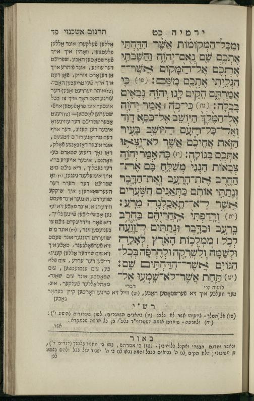 11 (1836) Sefer Yirmeyah / meturgam u-mevoʾar me-ḥadash me-et ha-Rav m.h. Shelomoh ben mo.h. Daṿid Zakhs (a.b.d. di-ḳ.ḳ. Likhṭenshṭadṭ u-gelilot Elenbogen ṿe-Zaʾats be-medinat Behmen) ṿe-nilṿah elaṿ Perush Rashi ṿe-haʿtaḳah u-veʾur kol milot be-laʿaz me-et ha-madpis Mosheh ha-Leṿi Landa11 (1836) ספר ירמיה / מתורגם ומבואר מחדש מאת הרב מ"ה שלמה בן מו"ה דוד זאכס (אב"ד דק"ק ליכטענשטאדט וגלילות עלנבאגען וזאאץ במדינת בעהמען) ונלוה אליו פירוש רש''י והעתקה ובאור כל מלות בלע''ז מאת המדפיס משה הלוי לנדא