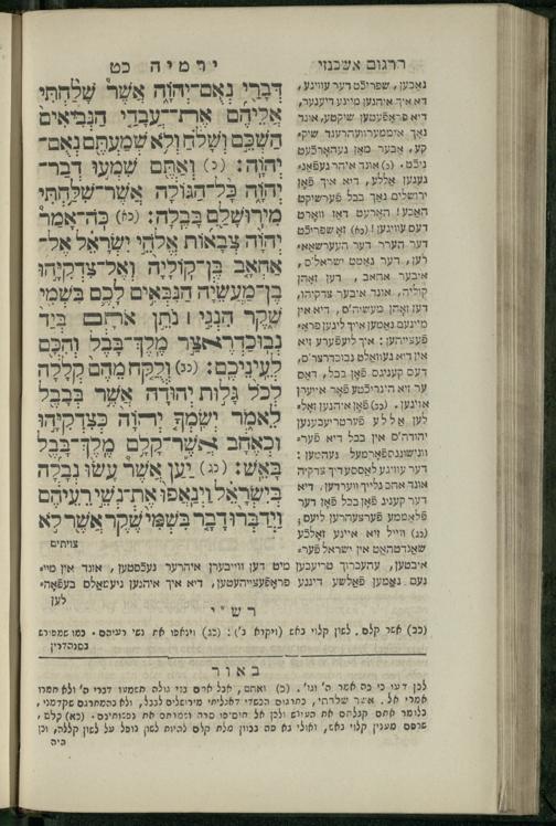 11 (1836) Sefer Yirmeyah / meturgam u-mevoʾar me-ḥadash me-et ha-Rav m.h. Shelomoh ben mo.h. Daṿid Zakhs (a.b.d. di-ḳ.ḳ. Likhṭenshṭadṭ u-gelilot Elenbogen ṿe-Zaʾats be-medinat Behmen) ṿe-nilṿah elaṿ Perush Rashi ṿe-haʿtaḳah u-veʾur kol milot be-laʿaz me-et ha-madpis Mosheh ha-Leṿi Landa11 (1836) ספר ירמיה / מתורגם ומבואר מחדש מאת הרב מ"ה שלמה בן מו"ה דוד זאכס (אב"ד דק"ק ליכטענשטאדט וגלילות עלנבאגען וזאאץ במדינת בעהמען) ונלוה אליו פירוש רש''י והעתקה ובאור כל מלות בלע''ז מאת המדפיס משה הלוי לנדא