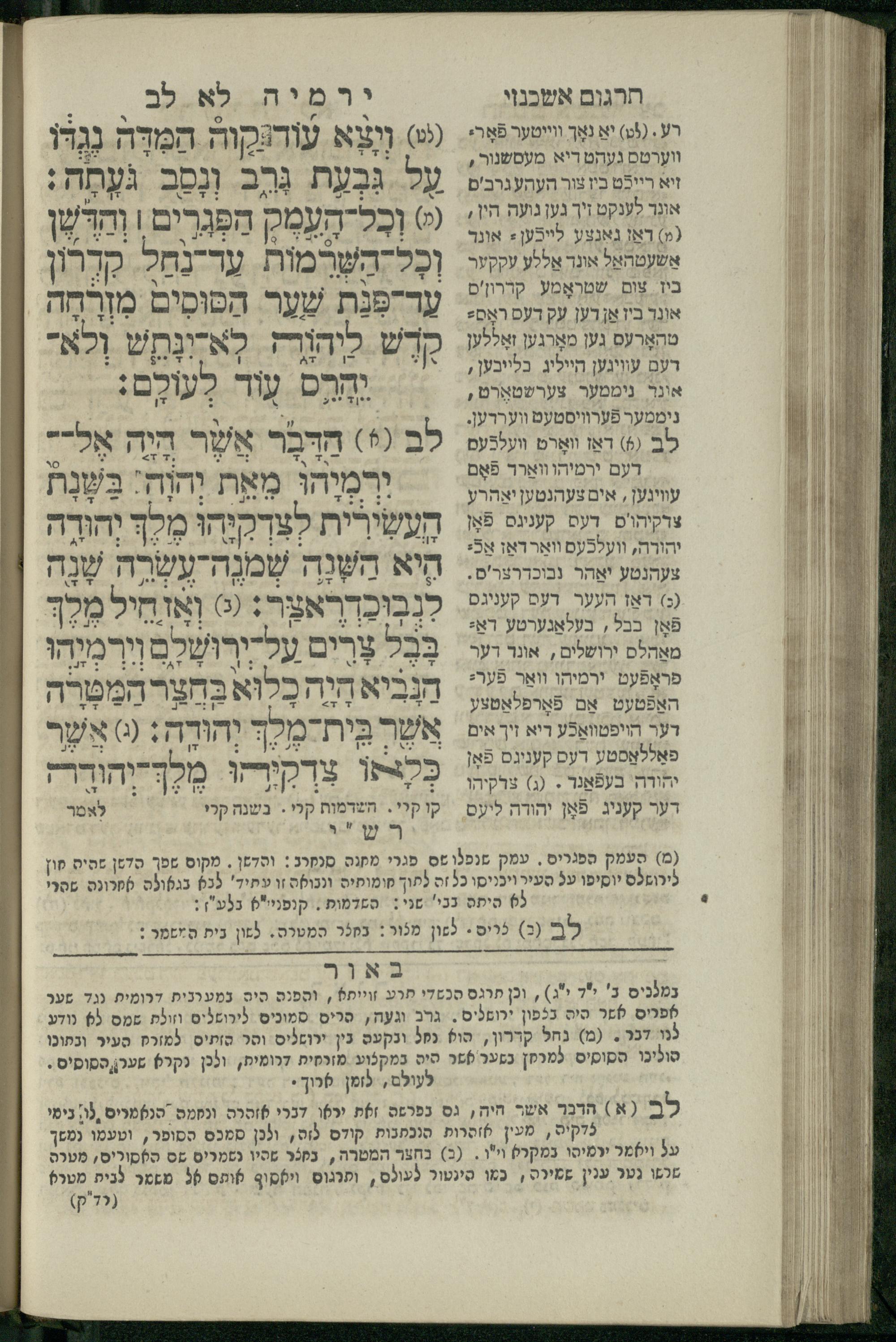 11 (1836) Sefer Yirmeyah / meturgam u-mevoʾar me-ḥadash me-et ha-Rav m.h. Shelomoh ben mo.h. Daṿid Zakhs (a.b.d. di-ḳ.ḳ. Likhṭenshṭadṭ u-gelilot Elenbogen ṿe-Zaʾats be-medinat Behmen) ṿe-nilṿah elaṿ Perush Rashi ṿe-haʿtaḳah u-veʾur kol milot be-laʿaz me-et ha-madpis Mosheh ha-Leṿi Landa11 (1836) ספר ירמיה / מתורגם ומבואר מחדש מאת הרב מ"ה שלמה בן מו"ה דוד זאכס (אב"ד דק"ק ליכטענשטאדט וגלילות עלנבאגען וזאאץ במדינת בעהמען) ונלוה אליו פירוש רש''י והעתקה ובאור כל מלות בלע''ז מאת המדפיס משה הלוי לנדא