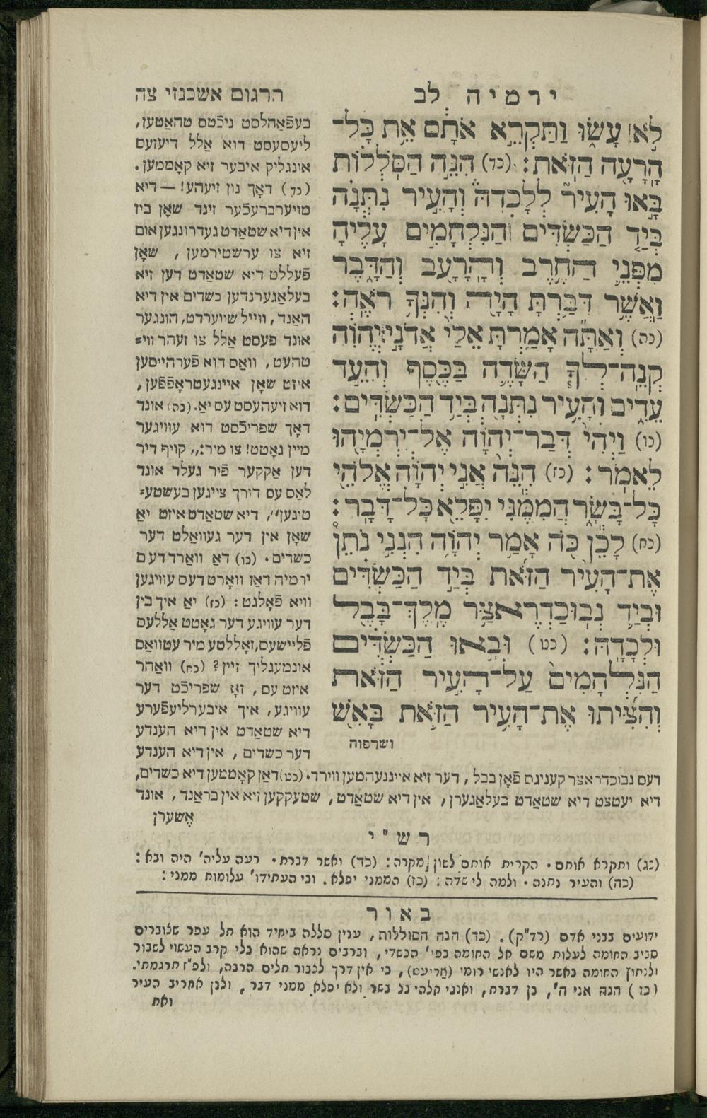 11 (1836) Sefer Yirmeyah / meturgam u-mevoʾar me-ḥadash me-et ha-Rav m.h. Shelomoh ben mo.h. Daṿid Zakhs (a.b.d. di-ḳ.ḳ. Likhṭenshṭadṭ u-gelilot Elenbogen ṿe-Zaʾats be-medinat Behmen) ṿe-nilṿah elaṿ Perush Rashi ṿe-haʿtaḳah u-veʾur kol milot be-laʿaz me-et ha-madpis Mosheh ha-Leṿi Landa11 (1836) ספר ירמיה / מתורגם ומבואר מחדש מאת הרב מ"ה שלמה בן מו"ה דוד זאכס (אב"ד דק"ק ליכטענשטאדט וגלילות עלנבאגען וזאאץ במדינת בעהמען) ונלוה אליו פירוש רש''י והעתקה ובאור כל מלות בלע''ז מאת המדפיס משה הלוי לנדא