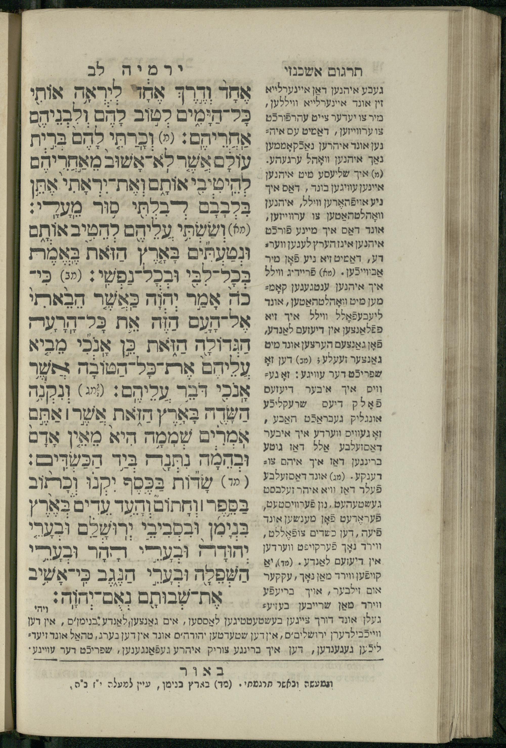 11 (1836) Sefer Yirmeyah / meturgam u-mevoʾar me-ḥadash me-et ha-Rav m.h. Shelomoh ben mo.h. Daṿid Zakhs (a.b.d. di-ḳ.ḳ. Likhṭenshṭadṭ u-gelilot Elenbogen ṿe-Zaʾats be-medinat Behmen) ṿe-nilṿah elaṿ Perush Rashi ṿe-haʿtaḳah u-veʾur kol milot be-laʿaz me-et ha-madpis Mosheh ha-Leṿi Landa11 (1836) ספר ירמיה / מתורגם ומבואר מחדש מאת הרב מ"ה שלמה בן מו"ה דוד זאכס (אב"ד דק"ק ליכטענשטאדט וגלילות עלנבאגען וזאאץ במדינת בעהמען) ונלוה אליו פירוש רש''י והעתקה ובאור כל מלות בלע''ז מאת המדפיס משה הלוי לנדא