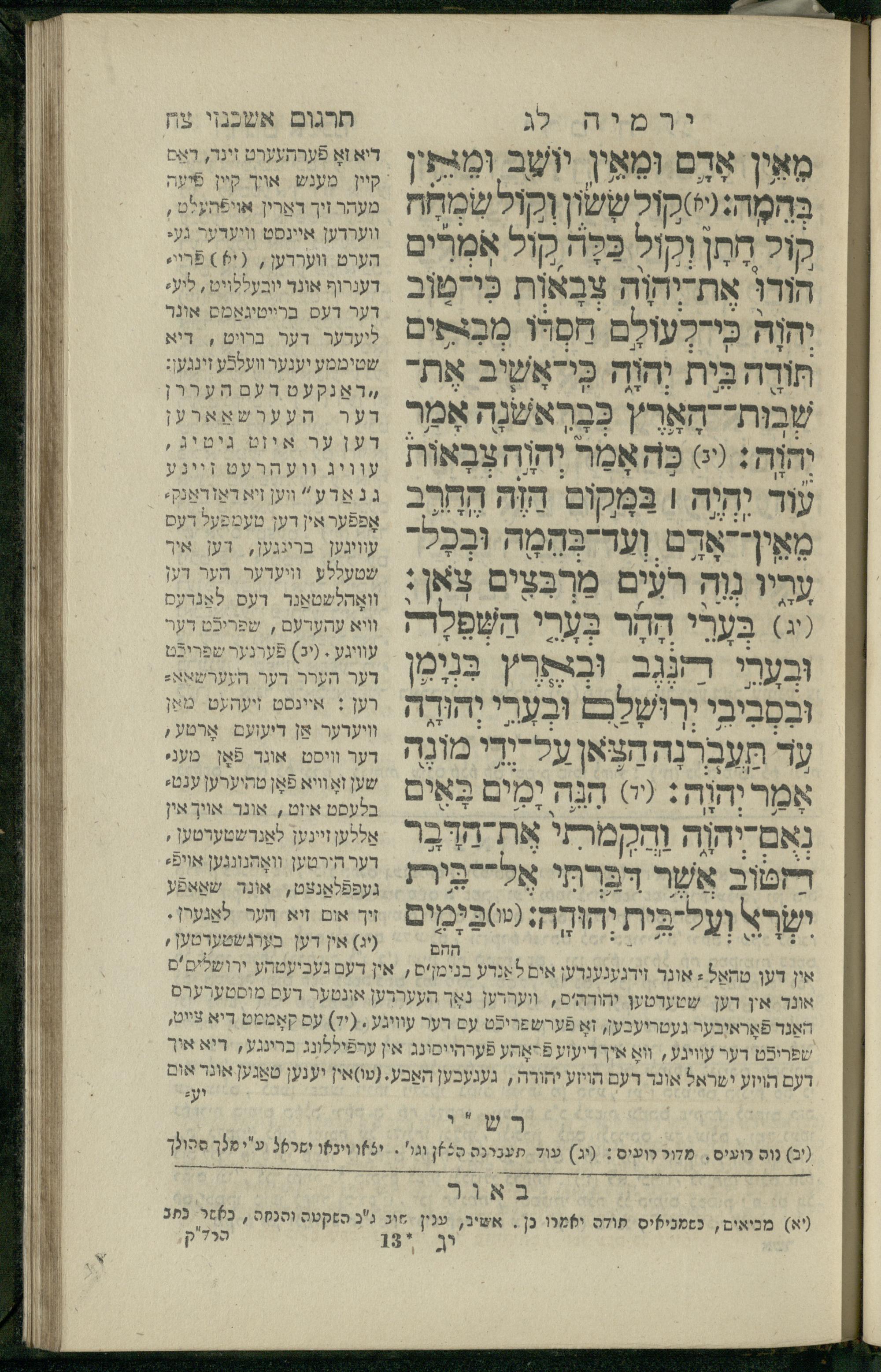 11 (1836) Sefer Yirmeyah / meturgam u-mevoʾar me-ḥadash me-et ha-Rav m.h. Shelomoh ben mo.h. Daṿid Zakhs (a.b.d. di-ḳ.ḳ. Likhṭenshṭadṭ u-gelilot Elenbogen ṿe-Zaʾats be-medinat Behmen) ṿe-nilṿah elaṿ Perush Rashi ṿe-haʿtaḳah u-veʾur kol milot be-laʿaz me-et ha-madpis Mosheh ha-Leṿi Landa11 (1836) ספר ירמיה / מתורגם ומבואר מחדש מאת הרב מ"ה שלמה בן מו"ה דוד זאכס (אב"ד דק"ק ליכטענשטאדט וגלילות עלנבאגען וזאאץ במדינת בעהמען) ונלוה אליו פירוש רש''י והעתקה ובאור כל מלות בלע''ז מאת המדפיס משה הלוי לנדא