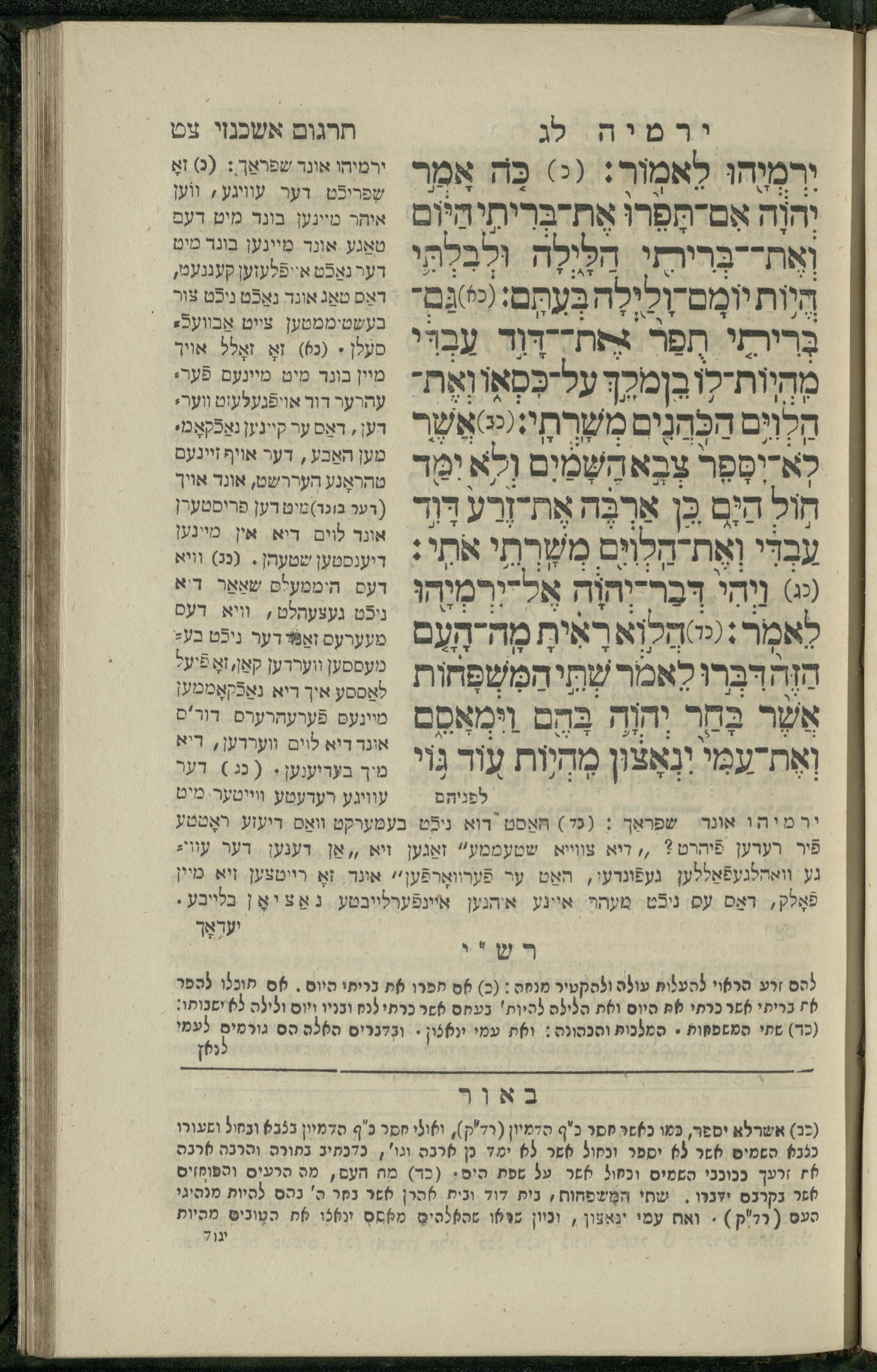 11 (1836) Sefer Yirmeyah / meturgam u-mevoʾar me-ḥadash me-et ha-Rav m.h. Shelomoh ben mo.h. Daṿid Zakhs (a.b.d. di-ḳ.ḳ. Likhṭenshṭadṭ u-gelilot Elenbogen ṿe-Zaʾats be-medinat Behmen) ṿe-nilṿah elaṿ Perush Rashi ṿe-haʿtaḳah u-veʾur kol milot be-laʿaz me-et ha-madpis Mosheh ha-Leṿi Landa11 (1836) ספר ירמיה / מתורגם ומבואר מחדש מאת הרב מ"ה שלמה בן מו"ה דוד זאכס (אב"ד דק"ק ליכטענשטאדט וגלילות עלנבאגען וזאאץ במדינת בעהמען) ונלוה אליו פירוש רש''י והעתקה ובאור כל מלות בלע''ז מאת המדפיס משה הלוי לנדא