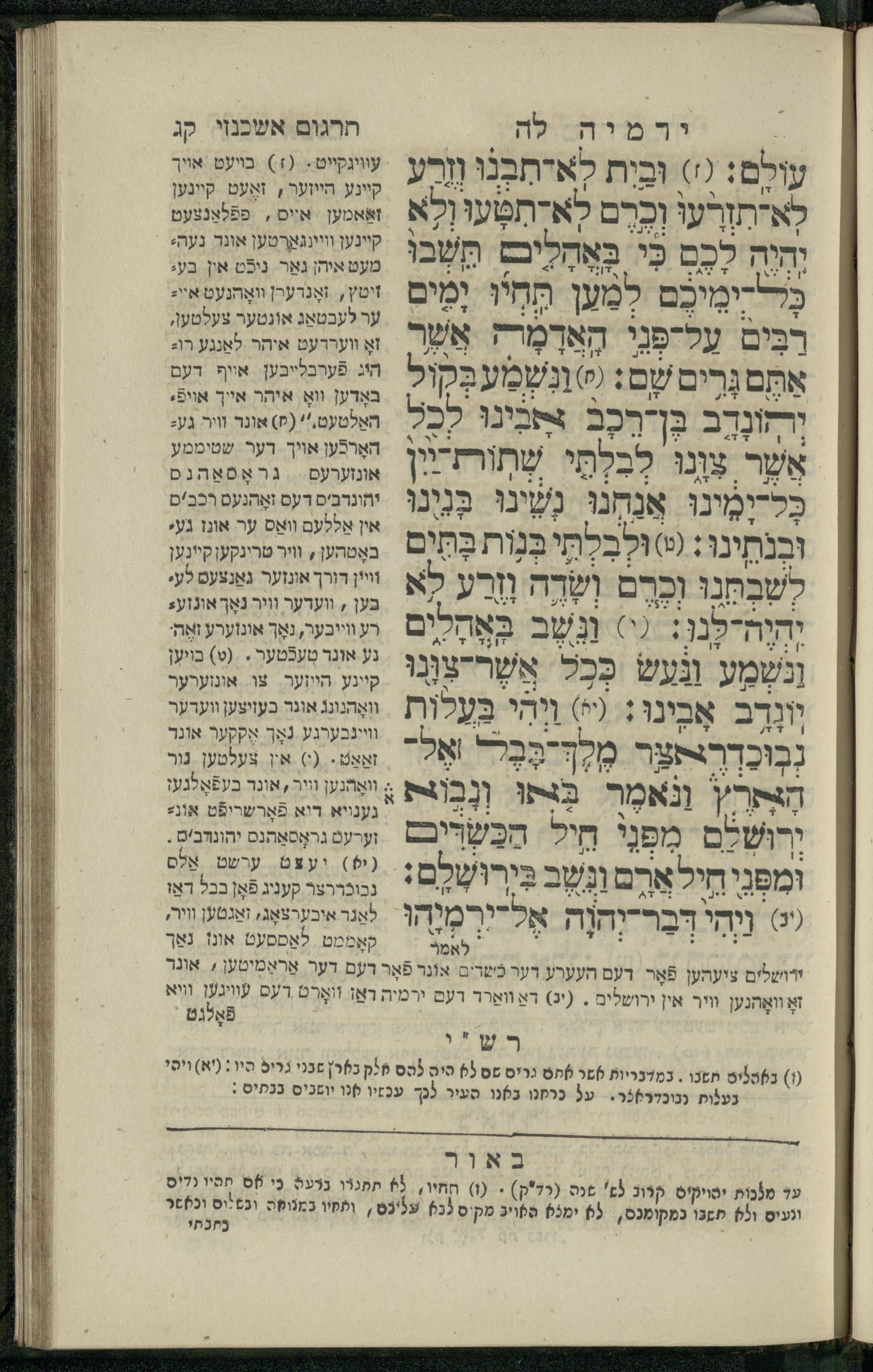 11 (1836) Sefer Yirmeyah / meturgam u-mevoʾar me-ḥadash me-et ha-Rav m.h. Shelomoh ben mo.h. Daṿid Zakhs (a.b.d. di-ḳ.ḳ. Likhṭenshṭadṭ u-gelilot Elenbogen ṿe-Zaʾats be-medinat Behmen) ṿe-nilṿah elaṿ Perush Rashi ṿe-haʿtaḳah u-veʾur kol milot be-laʿaz me-et ha-madpis Mosheh ha-Leṿi Landa11 (1836) ספר ירמיה / מתורגם ומבואר מחדש מאת הרב מ"ה שלמה בן מו"ה דוד זאכס (אב"ד דק"ק ליכטענשטאדט וגלילות עלנבאגען וזאאץ במדינת בעהמען) ונלוה אליו פירוש רש''י והעתקה ובאור כל מלות בלע''ז מאת המדפיס משה הלוי לנדא