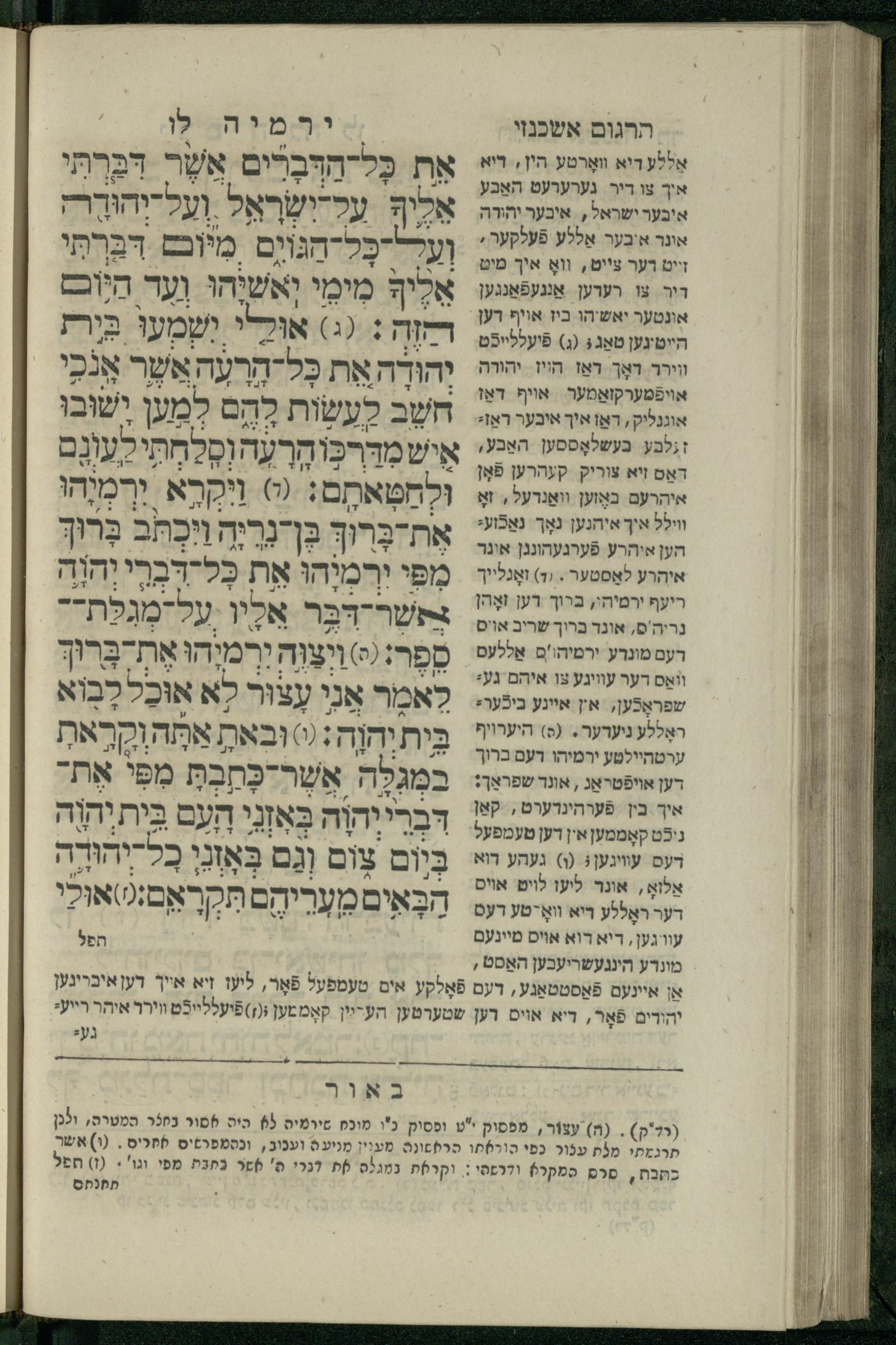 11 (1836) Sefer Yirmeyah / meturgam u-mevoʾar me-ḥadash me-et ha-Rav m.h. Shelomoh ben mo.h. Daṿid Zakhs (a.b.d. di-ḳ.ḳ. Likhṭenshṭadṭ u-gelilot Elenbogen ṿe-Zaʾats be-medinat Behmen) ṿe-nilṿah elaṿ Perush Rashi ṿe-haʿtaḳah u-veʾur kol milot be-laʿaz me-et ha-madpis Mosheh ha-Leṿi Landa11 (1836) ספר ירמיה / מתורגם ומבואר מחדש מאת הרב מ"ה שלמה בן מו"ה דוד זאכס (אב"ד דק"ק ליכטענשטאדט וגלילות עלנבאגען וזאאץ במדינת בעהמען) ונלוה אליו פירוש רש''י והעתקה ובאור כל מלות בלע''ז מאת המדפיס משה הלוי לנדא