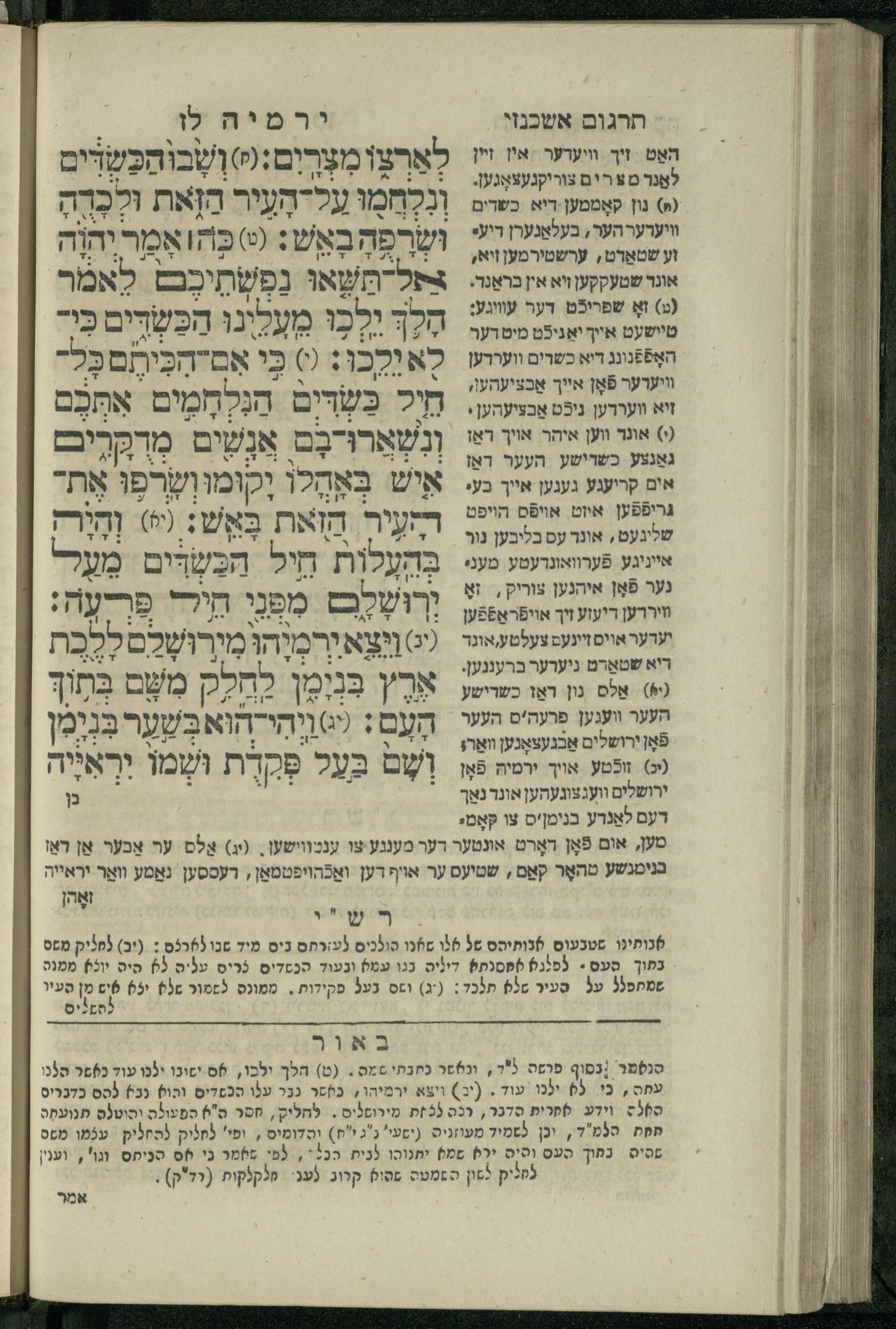 11 (1836) Sefer Yirmeyah / meturgam u-mevoʾar me-ḥadash me-et ha-Rav m.h. Shelomoh ben mo.h. Daṿid Zakhs (a.b.d. di-ḳ.ḳ. Likhṭenshṭadṭ u-gelilot Elenbogen ṿe-Zaʾats be-medinat Behmen) ṿe-nilṿah elaṿ Perush Rashi ṿe-haʿtaḳah u-veʾur kol milot be-laʿaz me-et ha-madpis Mosheh ha-Leṿi Landa11 (1836) ספר ירמיה / מתורגם ומבואר מחדש מאת הרב מ"ה שלמה בן מו"ה דוד זאכס (אב"ד דק"ק ליכטענשטאדט וגלילות עלנבאגען וזאאץ במדינת בעהמען) ונלוה אליו פירוש רש''י והעתקה ובאור כל מלות בלע''ז מאת המדפיס משה הלוי לנדא