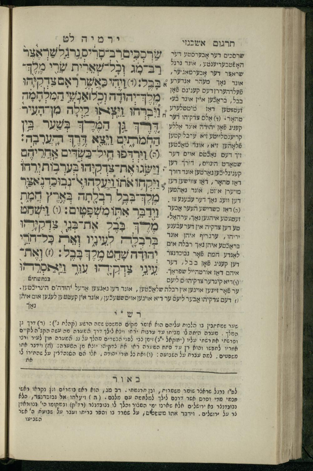 11 (1836) Sefer Yirmeyah / meturgam u-mevoʾar me-ḥadash me-et ha-Rav m.h. Shelomoh ben mo.h. Daṿid Zakhs (a.b.d. di-ḳ.ḳ. Likhṭenshṭadṭ u-gelilot Elenbogen ṿe-Zaʾats be-medinat Behmen) ṿe-nilṿah elaṿ Perush Rashi ṿe-haʿtaḳah u-veʾur kol milot be-laʿaz me-et ha-madpis Mosheh ha-Leṿi Landa11 (1836) ספר ירמיה / מתורגם ומבואר מחדש מאת הרב מ"ה שלמה בן מו"ה דוד זאכס (אב"ד דק"ק ליכטענשטאדט וגלילות עלנבאגען וזאאץ במדינת בעהמען) ונלוה אליו פירוש רש''י והעתקה ובאור כל מלות בלע''ז מאת המדפיס משה הלוי לנדא