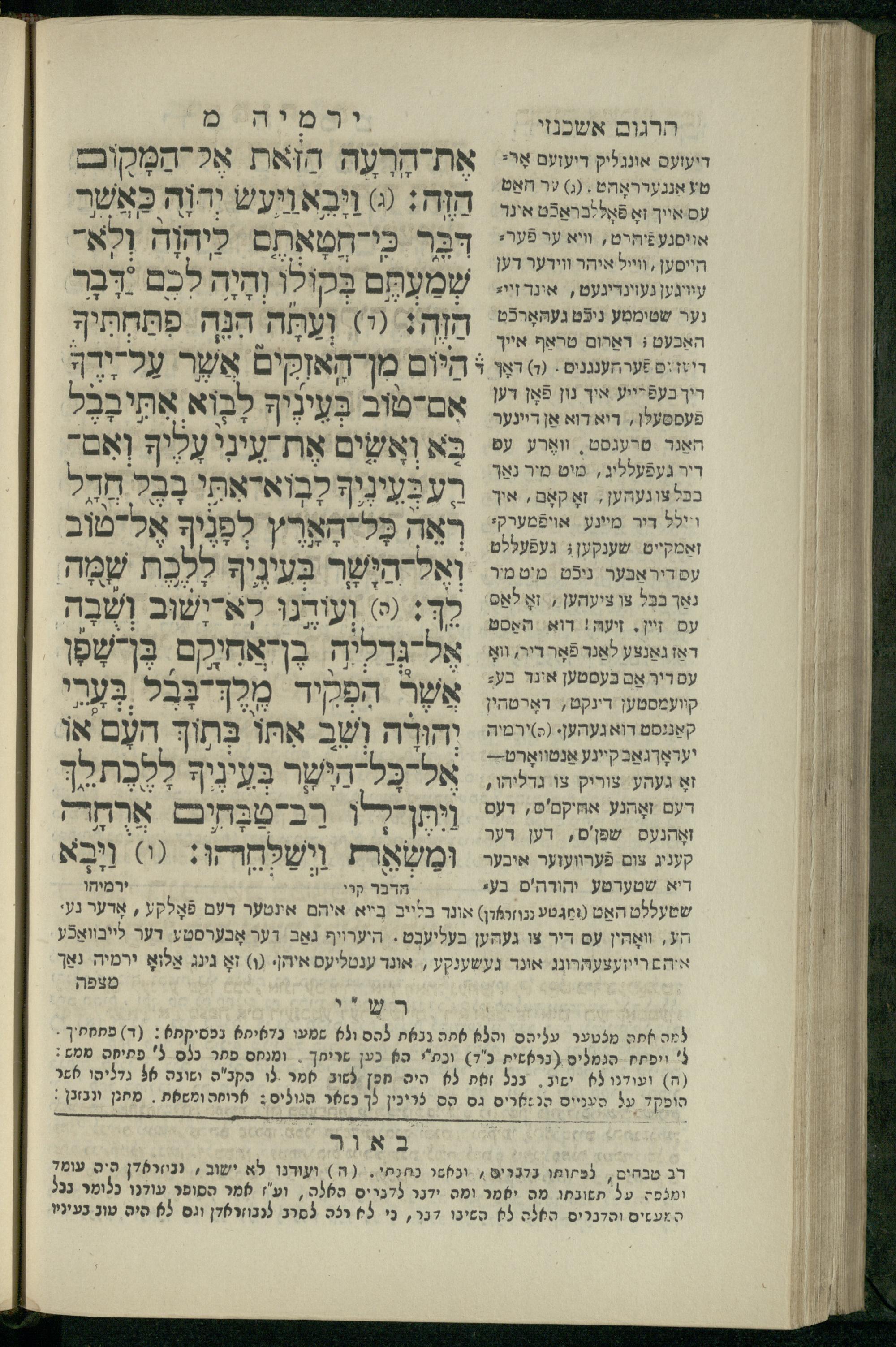 11 (1836) Sefer Yirmeyah / meturgam u-mevoʾar me-ḥadash me-et ha-Rav m.h. Shelomoh ben mo.h. Daṿid Zakhs (a.b.d. di-ḳ.ḳ. Likhṭenshṭadṭ u-gelilot Elenbogen ṿe-Zaʾats be-medinat Behmen) ṿe-nilṿah elaṿ Perush Rashi ṿe-haʿtaḳah u-veʾur kol milot be-laʿaz me-et ha-madpis Mosheh ha-Leṿi Landa11 (1836) ספר ירמיה / מתורגם ומבואר מחדש מאת הרב מ"ה שלמה בן מו"ה דוד זאכס (אב"ד דק"ק ליכטענשטאדט וגלילות עלנבאגען וזאאץ במדינת בעהמען) ונלוה אליו פירוש רש''י והעתקה ובאור כל מלות בלע''ז מאת המדפיס משה הלוי לנדא