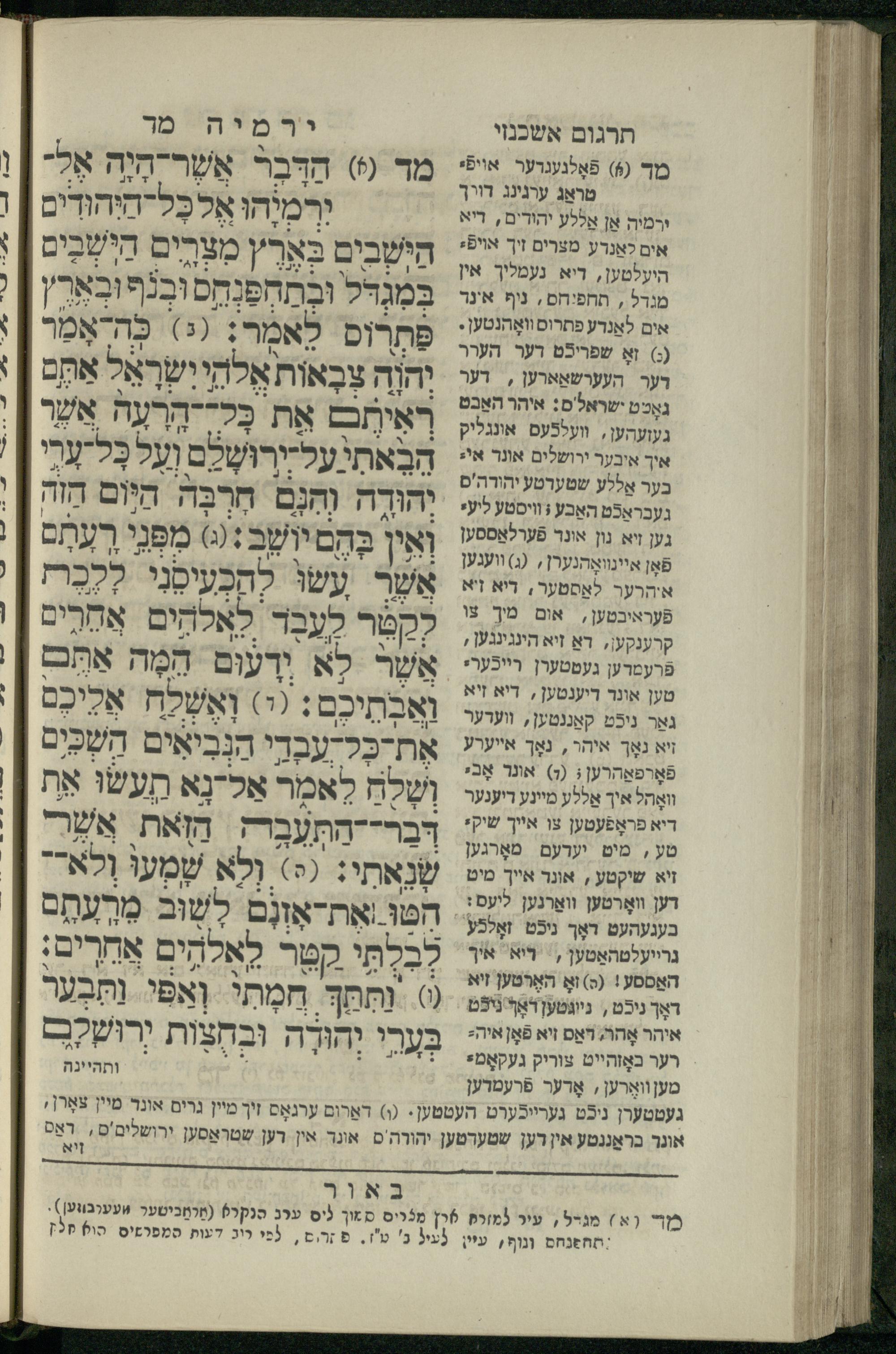 11 (1836) Sefer Yirmeyah / meturgam u-mevoʾar me-ḥadash me-et ha-Rav m.h. Shelomoh ben mo.h. Daṿid Zakhs (a.b.d. di-ḳ.ḳ. Likhṭenshṭadṭ u-gelilot Elenbogen ṿe-Zaʾats be-medinat Behmen) ṿe-nilṿah elaṿ Perush Rashi ṿe-haʿtaḳah u-veʾur kol milot be-laʿaz me-et ha-madpis Mosheh ha-Leṿi Landa11 (1836) ספר ירמיה / מתורגם ומבואר מחדש מאת הרב מ"ה שלמה בן מו"ה דוד זאכס (אב"ד דק"ק ליכטענשטאדט וגלילות עלנבאגען וזאאץ במדינת בעהמען) ונלוה אליו פירוש רש''י והעתקה ובאור כל מלות בלע''ז מאת המדפיס משה הלוי לנדא