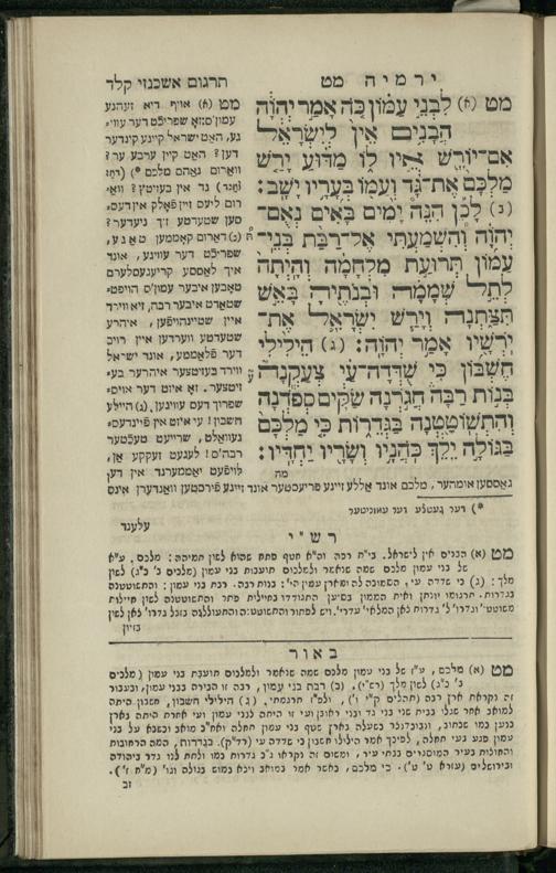 11 (1836) Sefer Yirmeyah / meturgam u-mevoʾar me-ḥadash me-et ha-Rav m.h. Shelomoh ben mo.h. Daṿid Zakhs (a.b.d. di-ḳ.ḳ. Likhṭenshṭadṭ u-gelilot Elenbogen ṿe-Zaʾats be-medinat Behmen) ṿe-nilṿah elaṿ Perush Rashi ṿe-haʿtaḳah u-veʾur kol milot be-laʿaz me-et ha-madpis Mosheh ha-Leṿi Landa11 (1836) ספר ירמיה / מתורגם ומבואר מחדש מאת הרב מ"ה שלמה בן מו"ה דוד זאכס (אב"ד דק"ק ליכטענשטאדט וגלילות עלנבאגען וזאאץ במדינת בעהמען) ונלוה אליו פירוש רש''י והעתקה ובאור כל מלות בלע''ז מאת המדפיס משה הלוי לנדא