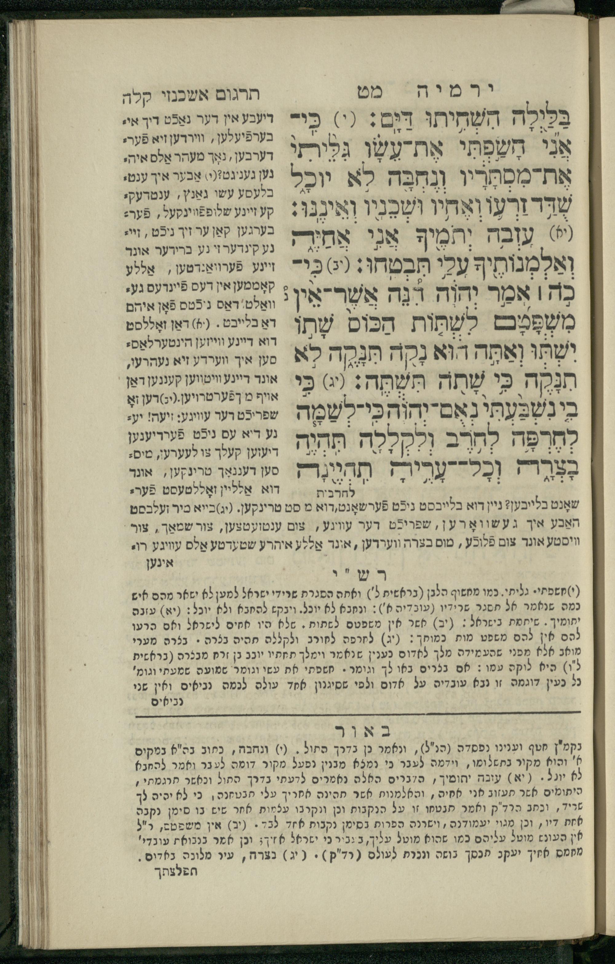 11 (1836) Sefer Yirmeyah / meturgam u-mevoʾar me-ḥadash me-et ha-Rav m.h. Shelomoh ben mo.h. Daṿid Zakhs (a.b.d. di-ḳ.ḳ. Likhṭenshṭadṭ u-gelilot Elenbogen ṿe-Zaʾats be-medinat Behmen) ṿe-nilṿah elaṿ Perush Rashi ṿe-haʿtaḳah u-veʾur kol milot be-laʿaz me-et ha-madpis Mosheh ha-Leṿi Landa11 (1836) ספר ירמיה / מתורגם ומבואר מחדש מאת הרב מ"ה שלמה בן מו"ה דוד זאכס (אב"ד דק"ק ליכטענשטאדט וגלילות עלנבאגען וזאאץ במדינת בעהמען) ונלוה אליו פירוש רש''י והעתקה ובאור כל מלות בלע''ז מאת המדפיס משה הלוי לנדא