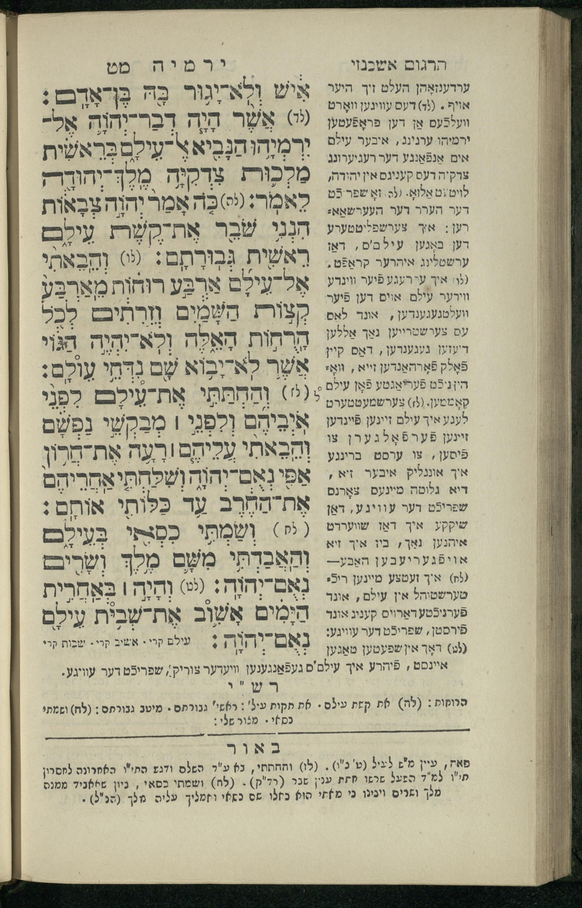 11 (1836) Sefer Yirmeyah / meturgam u-mevoʾar me-ḥadash me-et ha-Rav m.h. Shelomoh ben mo.h. Daṿid Zakhs (a.b.d. di-ḳ.ḳ. Likhṭenshṭadṭ u-gelilot Elenbogen ṿe-Zaʾats be-medinat Behmen) ṿe-nilṿah elaṿ Perush Rashi ṿe-haʿtaḳah u-veʾur kol milot be-laʿaz me-et ha-madpis Mosheh ha-Leṿi Landa11 (1836) ספר ירמיה / מתורגם ומבואר מחדש מאת הרב מ"ה שלמה בן מו"ה דוד זאכס (אב"ד דק"ק ליכטענשטאדט וגלילות עלנבאגען וזאאץ במדינת בעהמען) ונלוה אליו פירוש רש''י והעתקה ובאור כל מלות בלע''ז מאת המדפיס משה הלוי לנדא