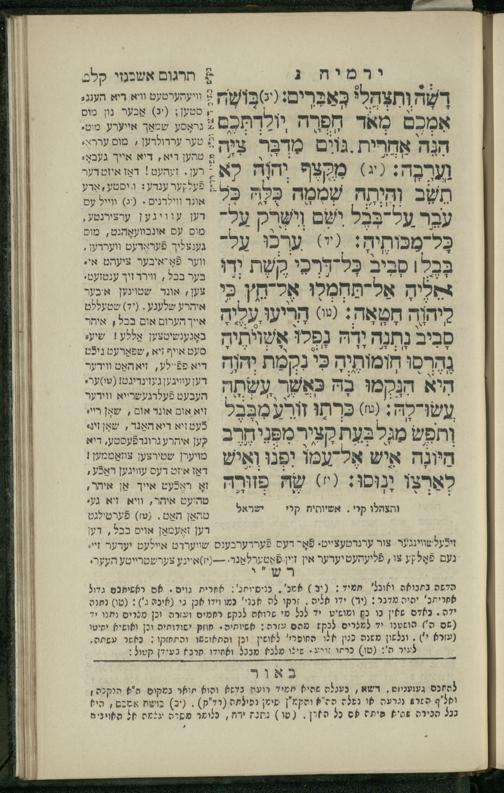 11 (1836) Sefer Yirmeyah / meturgam u-mevoʾar me-ḥadash me-et ha-Rav m.h. Shelomoh ben mo.h. Daṿid Zakhs (a.b.d. di-ḳ.ḳ. Likhṭenshṭadṭ u-gelilot Elenbogen ṿe-Zaʾats be-medinat Behmen) ṿe-nilṿah elaṿ Perush Rashi ṿe-haʿtaḳah u-veʾur kol milot be-laʿaz me-et ha-madpis Mosheh ha-Leṿi Landa11 (1836) ספר ירמיה / מתורגם ומבואר מחדש מאת הרב מ"ה שלמה בן מו"ה דוד זאכס (אב"ד דק"ק ליכטענשטאדט וגלילות עלנבאגען וזאאץ במדינת בעהמען) ונלוה אליו פירוש רש''י והעתקה ובאור כל מלות בלע''ז מאת המדפיס משה הלוי לנדא