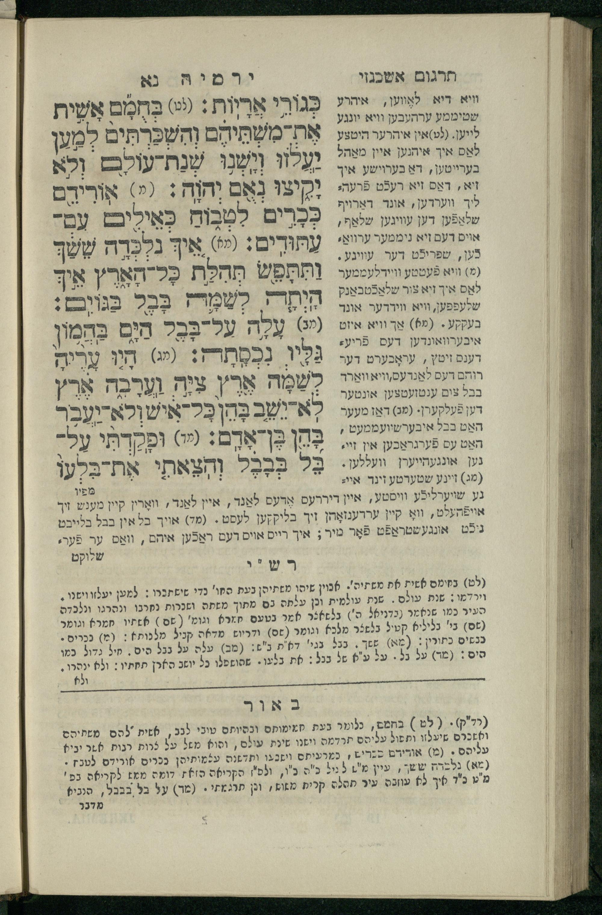 11 (1836) Sefer Yirmeyah / meturgam u-mevoʾar me-ḥadash me-et ha-Rav m.h. Shelomoh ben mo.h. Daṿid Zakhs (a.b.d. di-ḳ.ḳ. Likhṭenshṭadṭ u-gelilot Elenbogen ṿe-Zaʾats be-medinat Behmen) ṿe-nilṿah elaṿ Perush Rashi ṿe-haʿtaḳah u-veʾur kol milot be-laʿaz me-et ha-madpis Mosheh ha-Leṿi Landa11 (1836) ספר ירמיה / מתורגם ומבואר מחדש מאת הרב מ"ה שלמה בן מו"ה דוד זאכס (אב"ד דק"ק ליכטענשטאדט וגלילות עלנבאגען וזאאץ במדינת בעהמען) ונלוה אליו פירוש רש''י והעתקה ובאור כל מלות בלע''ז מאת המדפיס משה הלוי לנדא