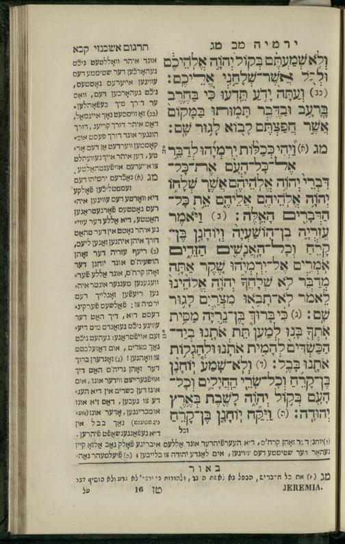 11 (1836) Sefer Yirmeyah / meturgam u-mevoʾar me-ḥadash me-et ha-Rav m.h. Shelomoh ben mo.h. Daṿid Zakhs (a.b.d. di-ḳ.ḳ. Likhṭenshṭadṭ u-gelilot Elenbogen ṿe-Zaʾats be-medinat Behmen) ṿe-nilṿah elaṿ Perush Rashi ṿe-haʿtaḳah u-veʾur kol milot be-laʿaz me-et ha-madpis Mosheh ha-Leṿi Landa11 (1836) ספר ירמיה / מתורגם ומבואר מחדש מאת הרב מ"ה שלמה בן מו"ה דוד זאכס (אב"ד דק"ק ליכטענשטאדט וגלילות עלנבאגען וזאאץ במדינת בעהמען) ונלוה אליו פירוש רש''י והעתקה ובאור כל מלות בלע''ז מאת המדפיס משה הלוי לנדא
