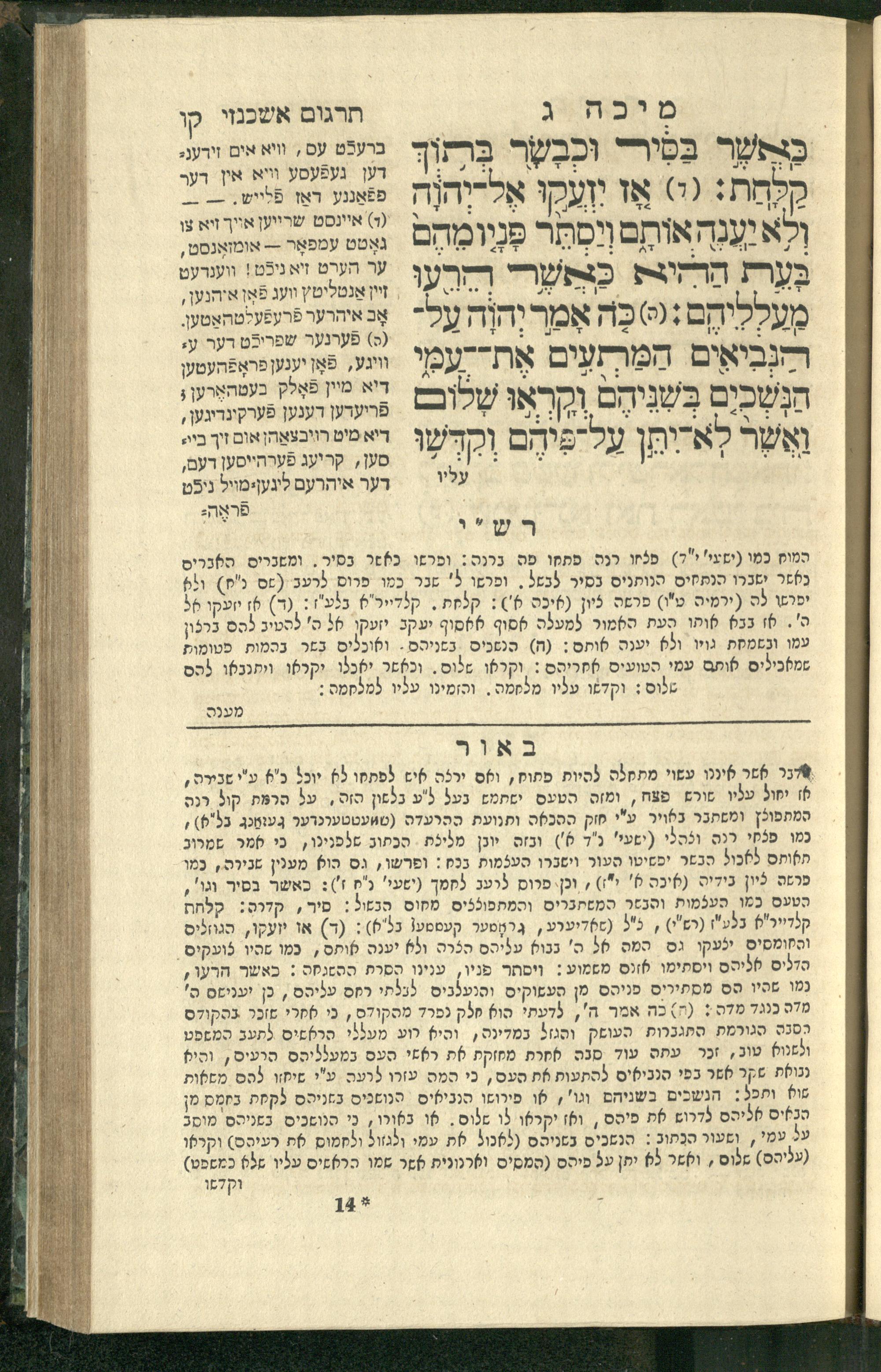 13 (1835) Sifre Tere ʿAśar : ʿim Perush Rashi ṿe-targum Ashkenazi u-veʾur / me-et metargemim u-mevaʾarim mefoʾarim bi-shemotam ʿale adamot ṿe-hugah me-ḥadash bi-sheḳidah rabah u-ve-ʿiyun gadol ; ṿe-nispeḥah le-sof Tere ʿAśar haʿtaḳah u-veʾur le-khol milot be-laʿaz ha-nimtsaʾot be-Fe. Rashi z.l. me-et ha-madpis Mosheh ha-Leṿi Landa13 (1835) ספרי תרי עשר : עם פירוש רש''י ותרגום אשכנזי ובאור / מאת מתרגמים ומבארים מפוארים בשמותם עלי אדמות והוגה מחדש בשקידה רבה ובעיון גדול ; ונספחה לסוף תרי עשר העתקה ובאור לכל מלות בלע''ז הנמצאות בפירש"י ז"ל מאת המדפיס משה הלוי לנדא