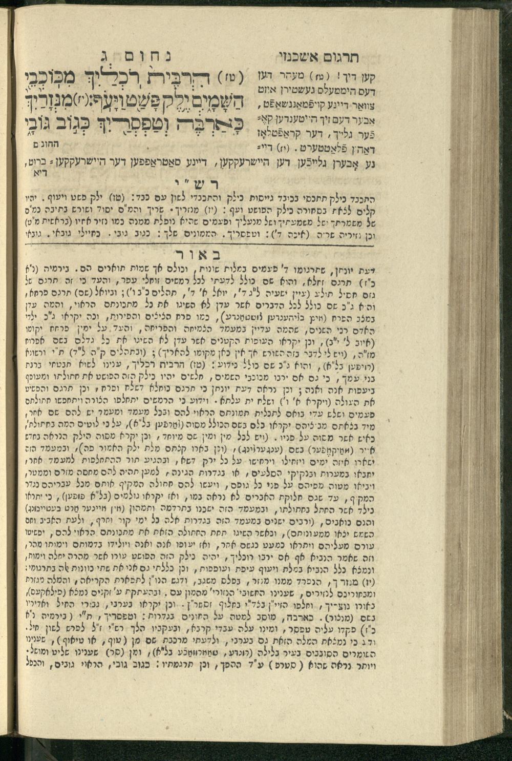 13 (1835) Sifre Tere ʿAśar : ʿim Perush Rashi ṿe-targum Ashkenazi u-veʾur / me-et metargemim u-mevaʾarim mefoʾarim bi-shemotam ʿale adamot ṿe-hugah me-ḥadash bi-sheḳidah rabah u-ve-ʿiyun gadol ; ṿe-nispeḥah le-sof Tere ʿAśar haʿtaḳah u-veʾur le-khol milot be-laʿaz ha-nimtsaʾot be-Fe. Rashi z.l. me-et ha-madpis Mosheh ha-Leṿi Landa13 (1835) ספרי תרי עשר : עם פירוש רש''י ותרגום אשכנזי ובאור / מאת מתרגמים ומבארים מפוארים בשמותם עלי אדמות והוגה מחדש בשקידה רבה ובעיון גדול ; ונספחה לסוף תרי עשר העתקה ובאור לכל מלות בלע''ז הנמצאות בפירש"י ז"ל מאת המדפיס משה הלוי לנדא
