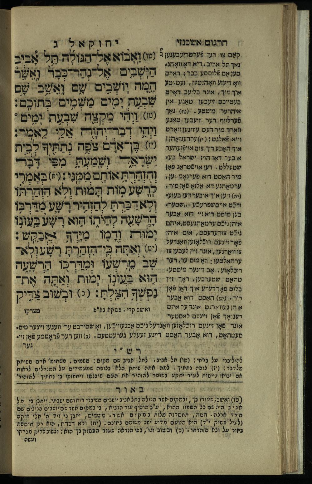 12 (1836) Sefer Yeḥezḳel / meturgam me-ḥadash u-mevoʾar me-iti M. Benesh ṿe-nilṿah elaṿ Perush Rashi ṿe-haʿtaḳat u-veʾur kol milot be-laʿaz me-et ha-madpis Mosheh ha-Leṿi Landa12 (1836) ספר יחזקאל / מתורגם מחדש ומבואר מאתי מ. בענעש ונלוה אליו פירוש רש''י והעתקת ובאור כל מלות בלע''ז מאת המדפיס משה הלוי לנדא