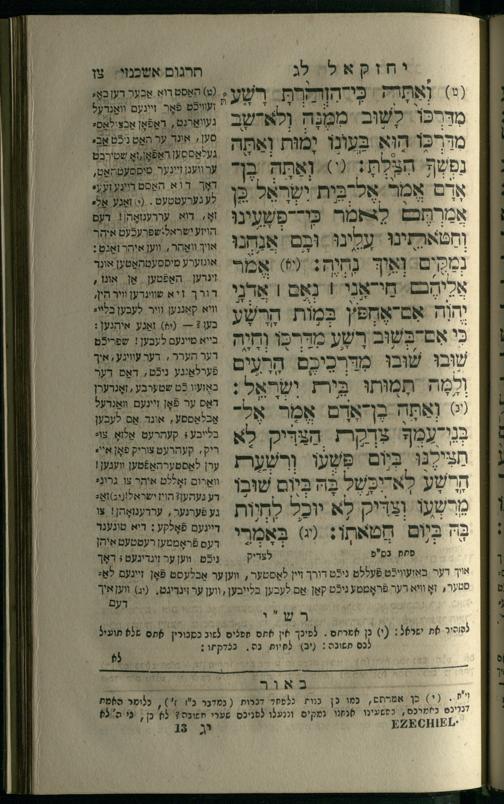 12 (1836) Sefer Yeḥezḳel / meturgam me-ḥadash u-mevoʾar me-iti M. Benesh ṿe-nilṿah elaṿ Perush Rashi ṿe-haʿtaḳat u-veʾur kol milot be-laʿaz me-et ha-madpis Mosheh ha-Leṿi Landa12 (1836) ספר יחזקאל / מתורגם מחדש ומבואר מאתי מ. בענעש ונלוה אליו פירוש רש''י והעתקת ובאור כל מלות בלע''ז מאת המדפיס משה הלוי לנדא