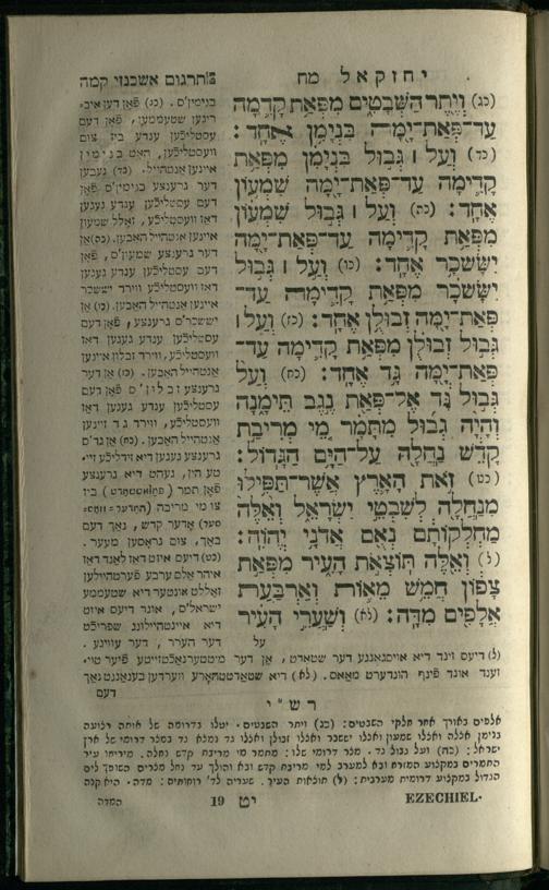12 (1836) Sefer Yeḥezḳel / meturgam me-ḥadash u-mevoʾar me-iti M. Benesh ṿe-nilṿah elaṿ Perush Rashi ṿe-haʿtaḳat u-veʾur kol milot be-laʿaz me-et ha-madpis Mosheh ha-Leṿi Landa12 (1836) ספר יחזקאל / מתורגם מחדש ומבואר מאתי מ. בענעש ונלוה אליו פירוש רש''י והעתקת ובאור כל מלות בלע''ז מאת המדפיס משה הלוי לנדא