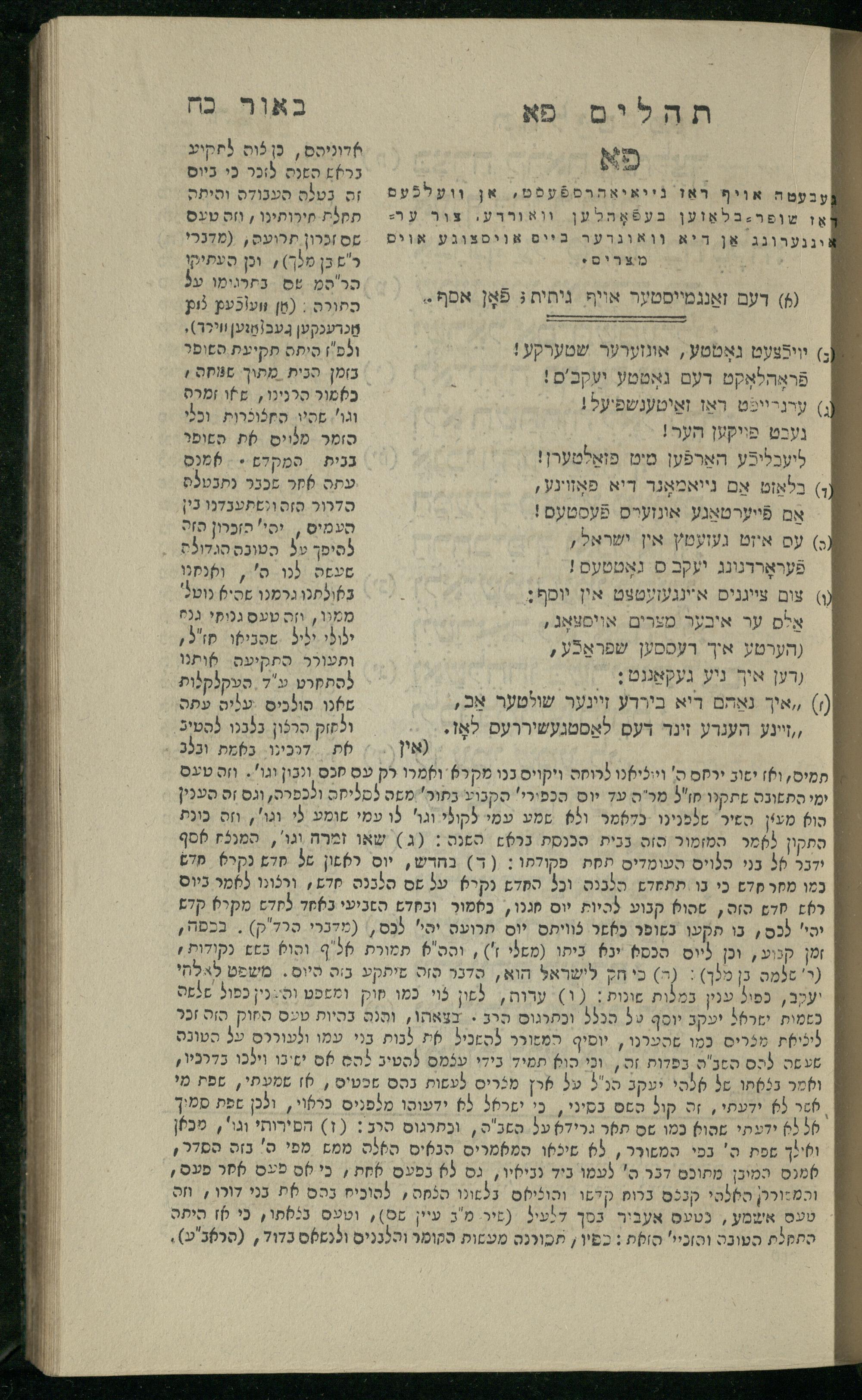 15 (1835) Sefer Tehilim / ʿim Perush Rashi ṿe-targum Ashkenazi me-et Rabenu Mosheh ben Menaḥem n.ʿE., u-veʾur me-et ha-ḥakham ha-mefursam R. Yoʾel Bril asher ḳara be-shem Zemirot Yiśraʾel, ṿe-nilṿeh elaṿ ha-Maʿamar me-et ha-ḥakham ha-medaḳdeḳ mo.h. Ṿolf Meʾir (moreh lashon ʿIvri be-vet ḥinukh ha-normali asher be-Prag), u-ve-tokho nikhlal haʿataḳah u-veʾur le-khol milot be-laʿaz ha-nimtsaʾot be-Fe. Rashi z.l. me-et ha-madpis Mosheh ha-Leṿi Landa15 (1835) ספר תהלים / עם פירוש רש''י ותרגום אשכנזי מאת רבינו משה בן מנחם נ"ע, ובאור מאת החכם המפורסם ר' יואל ברי"ל אשר קרא בשם זמירות ישראל, ונלוה אליו המעמר מאת החכם המדקדק מו"ה וואלף מאיר (מורה לשון עברי בבית חנוך הנארמאלי אשר בפראג), ובתוכו נכלל העתקה ובאור לכל מלות בלע"ז הנמצאות בפירש"י ז"ל מאת המדפיס משה הלוי לנדא