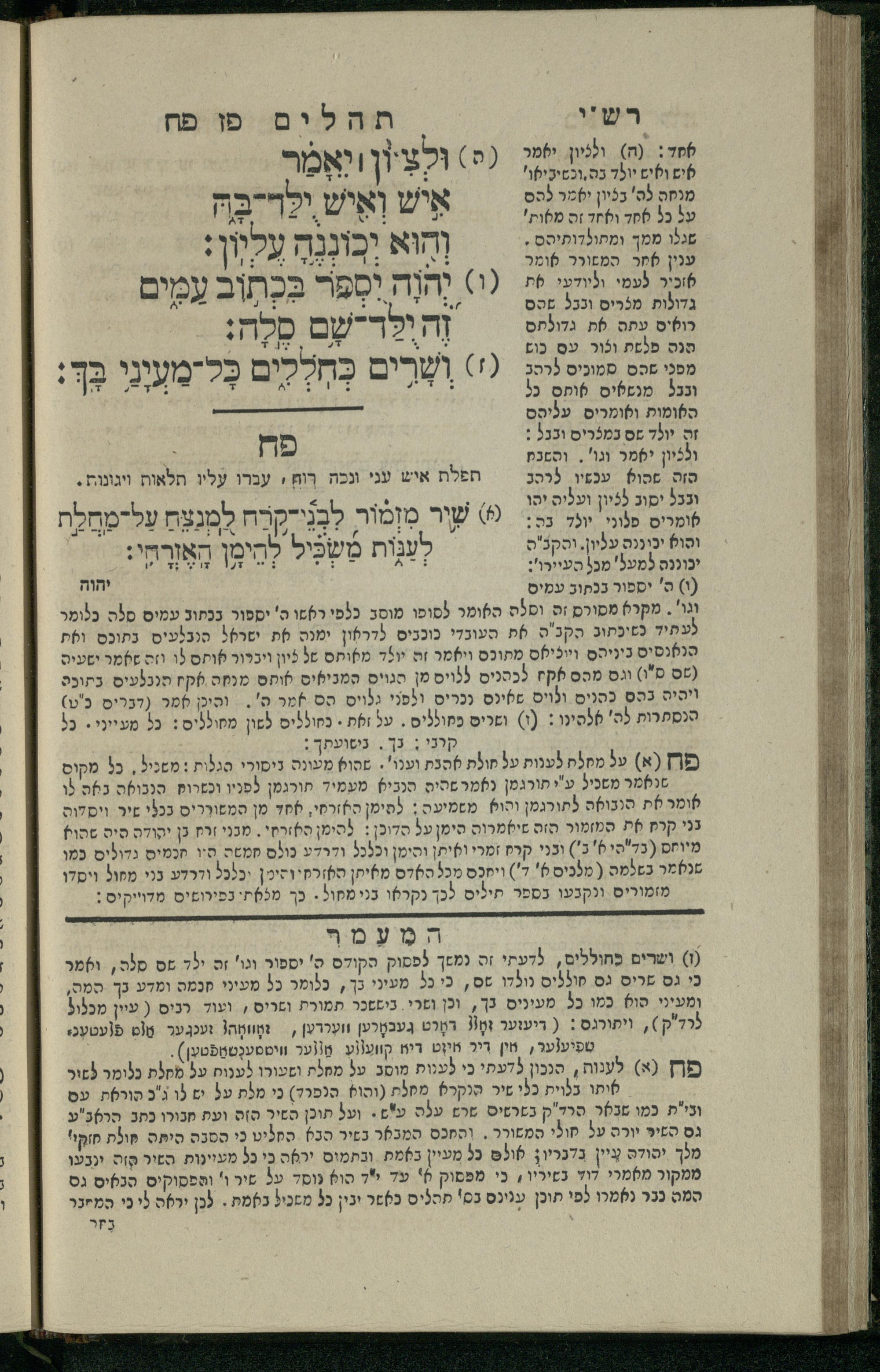 15 (1835) Sefer Tehilim / ʿim Perush Rashi ṿe-targum Ashkenazi me-et Rabenu Mosheh ben Menaḥem n.ʿE., u-veʾur me-et ha-ḥakham ha-mefursam R. Yoʾel Bril asher ḳara be-shem Zemirot Yiśraʾel, ṿe-nilṿeh elaṿ ha-Maʿamar me-et ha-ḥakham ha-medaḳdeḳ mo.h. Ṿolf Meʾir (moreh lashon ʿIvri be-vet ḥinukh ha-normali asher be-Prag), u-ve-tokho nikhlal haʿataḳah u-veʾur le-khol milot be-laʿaz ha-nimtsaʾot be-Fe. Rashi z.l. me-et ha-madpis Mosheh ha-Leṿi Landa15 (1835) ספר תהלים / עם פירוש רש''י ותרגום אשכנזי מאת רבינו משה בן מנחם נ"ע, ובאור מאת החכם המפורסם ר' יואל ברי"ל אשר קרא בשם זמירות ישראל, ונלוה אליו המעמר מאת החכם המדקדק מו"ה וואלף מאיר (מורה לשון עברי בבית חנוך הנארמאלי אשר בפראג), ובתוכו נכלל העתקה ובאור לכל מלות בלע"ז הנמצאות בפירש"י ז"ל מאת המדפיס משה הלוי לנדא