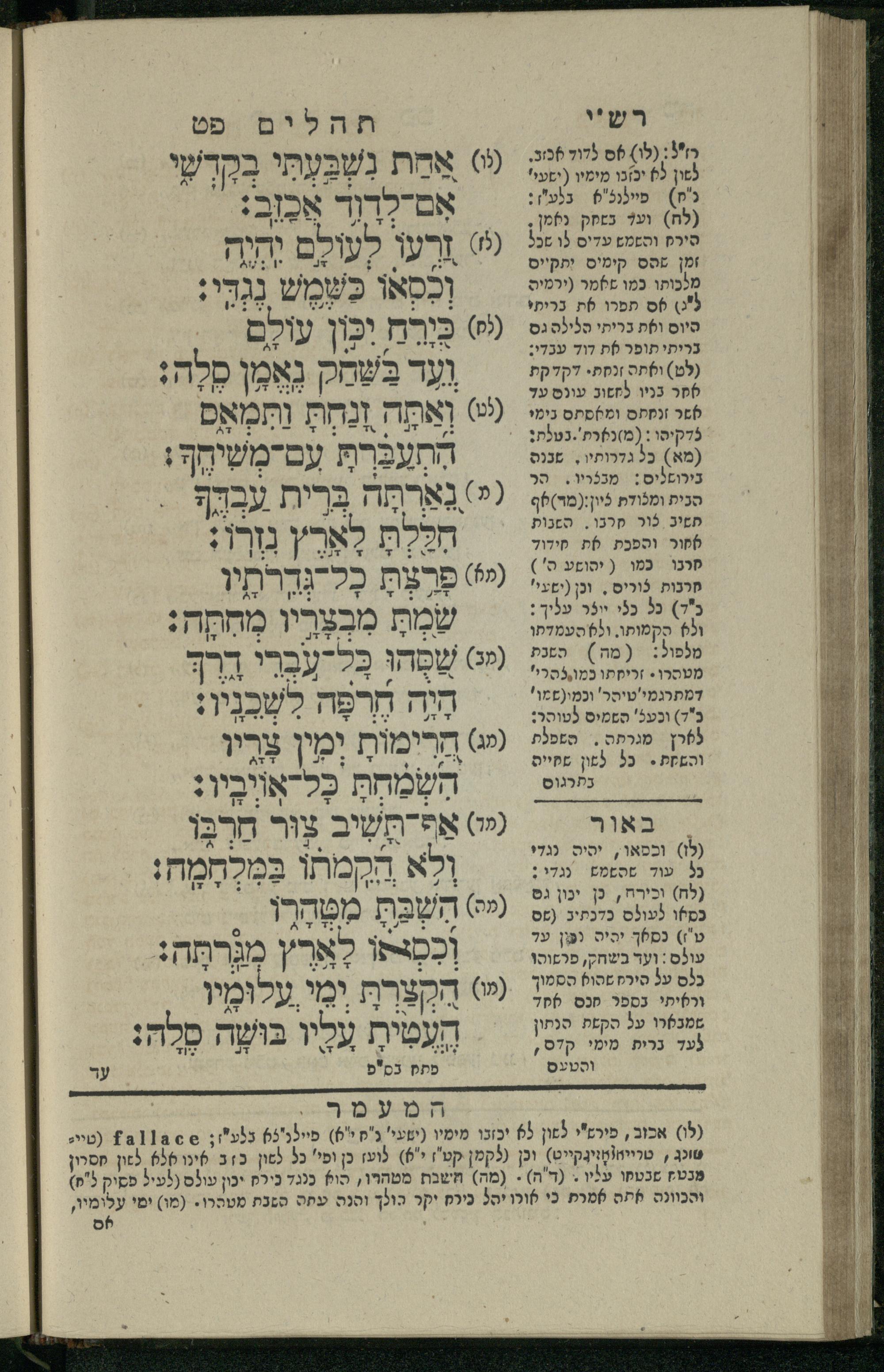 15 (1835) Sefer Tehilim / ʿim Perush Rashi ṿe-targum Ashkenazi me-et Rabenu Mosheh ben Menaḥem n.ʿE., u-veʾur me-et ha-ḥakham ha-mefursam R. Yoʾel Bril asher ḳara be-shem Zemirot Yiśraʾel, ṿe-nilṿeh elaṿ ha-Maʿamar me-et ha-ḥakham ha-medaḳdeḳ mo.h. Ṿolf Meʾir (moreh lashon ʿIvri be-vet ḥinukh ha-normali asher be-Prag), u-ve-tokho nikhlal haʿataḳah u-veʾur le-khol milot be-laʿaz ha-nimtsaʾot be-Fe. Rashi z.l. me-et ha-madpis Mosheh ha-Leṿi Landa15 (1835) ספר תהלים / עם פירוש רש''י ותרגום אשכנזי מאת רבינו משה בן מנחם נ"ע, ובאור מאת החכם המפורסם ר' יואל ברי"ל אשר קרא בשם זמירות ישראל, ונלוה אליו המעמר מאת החכם המדקדק מו"ה וואלף מאיר (מורה לשון עברי בבית חנוך הנארמאלי אשר בפראג), ובתוכו נכלל העתקה ובאור לכל מלות בלע"ז הנמצאות בפירש"י ז"ל מאת המדפיס משה הלוי לנדא