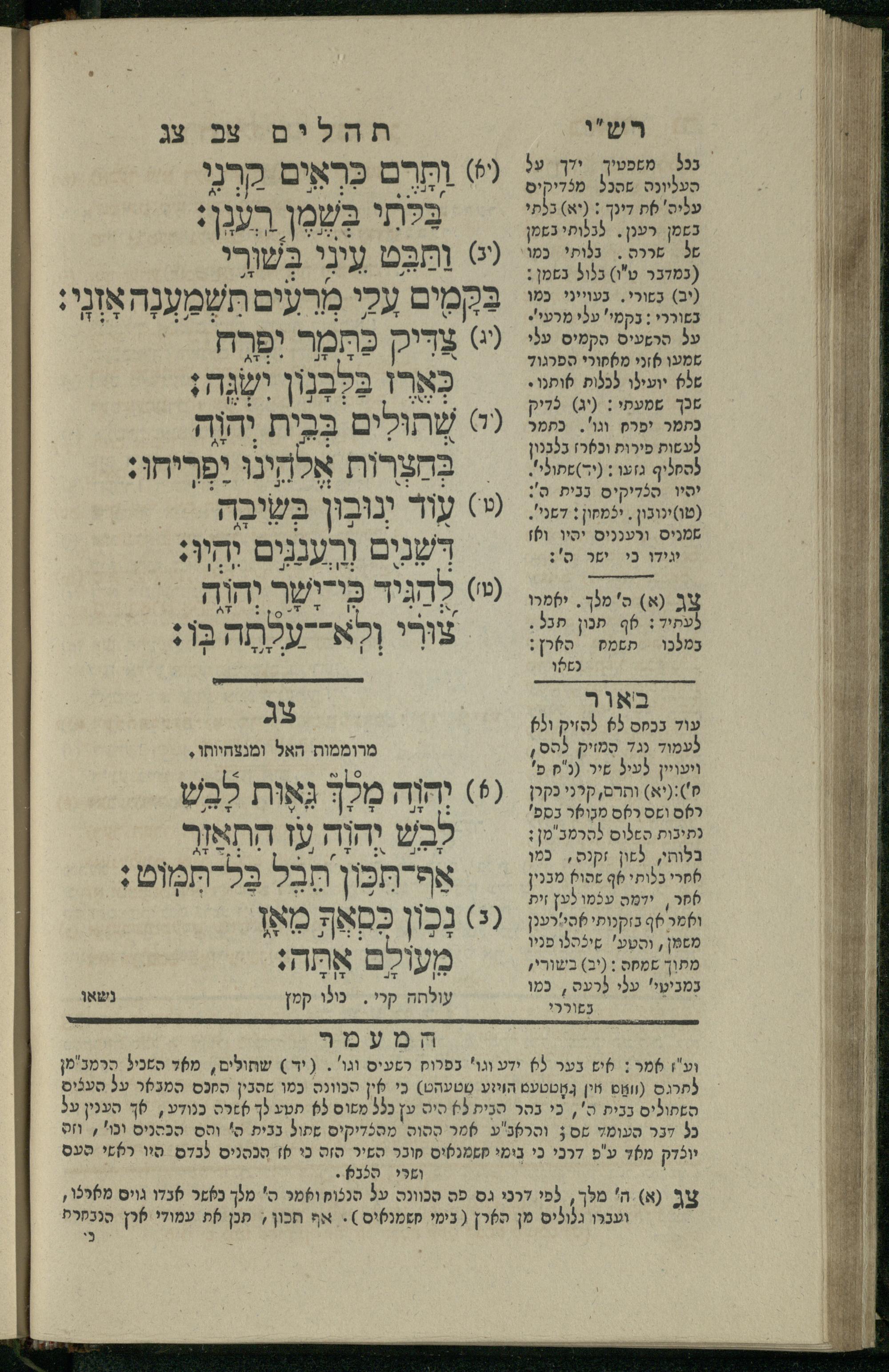 15 (1835) Sefer Tehilim / ʿim Perush Rashi ṿe-targum Ashkenazi me-et Rabenu Mosheh ben Menaḥem n.ʿE., u-veʾur me-et ha-ḥakham ha-mefursam R. Yoʾel Bril asher ḳara be-shem Zemirot Yiśraʾel, ṿe-nilṿeh elaṿ ha-Maʿamar me-et ha-ḥakham ha-medaḳdeḳ mo.h. Ṿolf Meʾir (moreh lashon ʿIvri be-vet ḥinukh ha-normali asher be-Prag), u-ve-tokho nikhlal haʿataḳah u-veʾur le-khol milot be-laʿaz ha-nimtsaʾot be-Fe. Rashi z.l. me-et ha-madpis Mosheh ha-Leṿi Landa15 (1835) ספר תהלים / עם פירוש רש''י ותרגום אשכנזי מאת רבינו משה בן מנחם נ"ע, ובאור מאת החכם המפורסם ר' יואל ברי"ל אשר קרא בשם זמירות ישראל, ונלוה אליו המעמר מאת החכם המדקדק מו"ה וואלף מאיר (מורה לשון עברי בבית חנוך הנארמאלי אשר בפראג), ובתוכו נכלל העתקה ובאור לכל מלות בלע"ז הנמצאות בפירש"י ז"ל מאת המדפיס משה הלוי לנדא