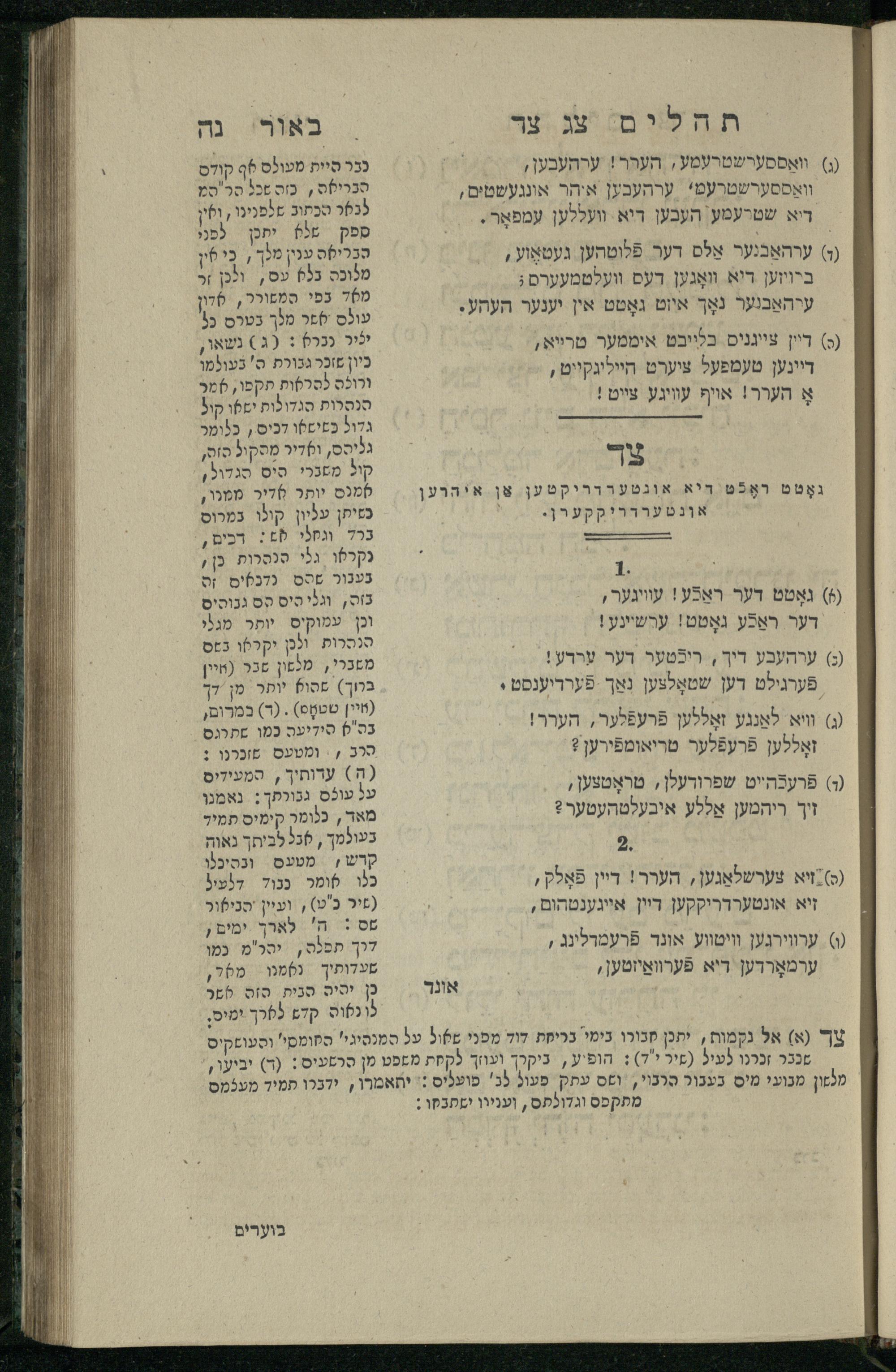 15 (1835) Sefer Tehilim / ʿim Perush Rashi ṿe-targum Ashkenazi me-et Rabenu Mosheh ben Menaḥem n.ʿE., u-veʾur me-et ha-ḥakham ha-mefursam R. Yoʾel Bril asher ḳara be-shem Zemirot Yiśraʾel, ṿe-nilṿeh elaṿ ha-Maʿamar me-et ha-ḥakham ha-medaḳdeḳ mo.h. Ṿolf Meʾir (moreh lashon ʿIvri be-vet ḥinukh ha-normali asher be-Prag), u-ve-tokho nikhlal haʿataḳah u-veʾur le-khol milot be-laʿaz ha-nimtsaʾot be-Fe. Rashi z.l. me-et ha-madpis Mosheh ha-Leṿi Landa15 (1835) ספר תהלים / עם פירוש רש''י ותרגום אשכנזי מאת רבינו משה בן מנחם נ"ע, ובאור מאת החכם המפורסם ר' יואל ברי"ל אשר קרא בשם זמירות ישראל, ונלוה אליו המעמר מאת החכם המדקדק מו"ה וואלף מאיר (מורה לשון עברי בבית חנוך הנארמאלי אשר בפראג), ובתוכו נכלל העתקה ובאור לכל מלות בלע"ז הנמצאות בפירש"י ז"ל מאת המדפיס משה הלוי לנדא