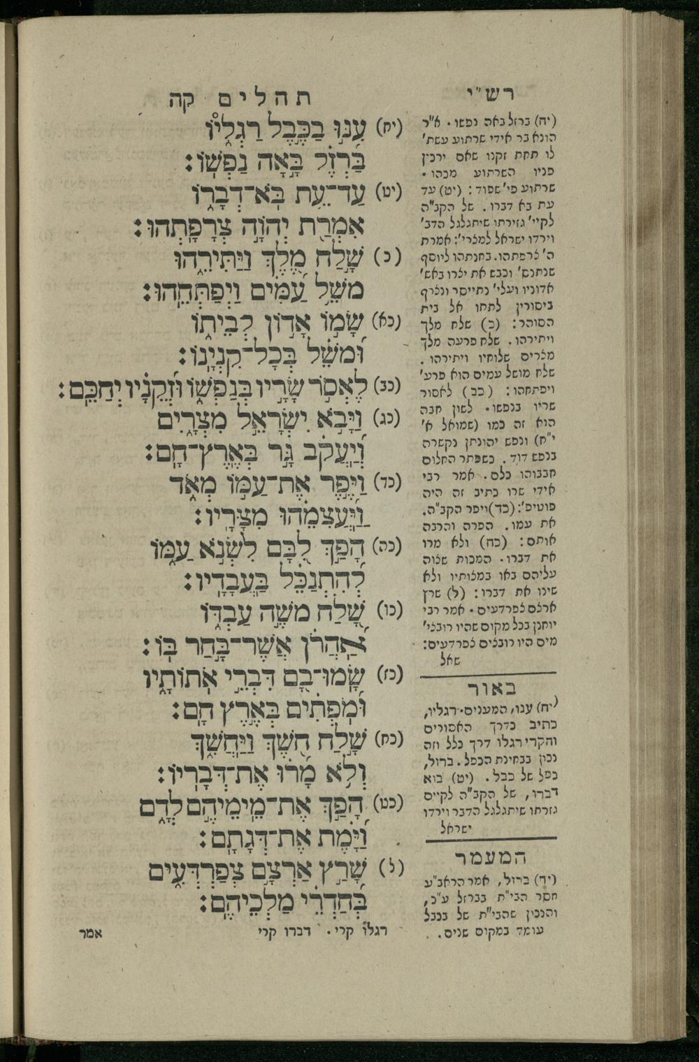 15 (1835) Sefer Tehilim / ʿim Perush Rashi ṿe-targum Ashkenazi me-et Rabenu Mosheh ben Menaḥem n.ʿE., u-veʾur me-et ha-ḥakham ha-mefursam R. Yoʾel Bril asher ḳara be-shem Zemirot Yiśraʾel, ṿe-nilṿeh elaṿ ha-Maʿamar me-et ha-ḥakham ha-medaḳdeḳ mo.h. Ṿolf Meʾir (moreh lashon ʿIvri be-vet ḥinukh ha-normali asher be-Prag), u-ve-tokho nikhlal haʿataḳah u-veʾur le-khol milot be-laʿaz ha-nimtsaʾot be-Fe. Rashi z.l. me-et ha-madpis Mosheh ha-Leṿi Landa15 (1835) ספר תהלים / עם פירוש רש''י ותרגום אשכנזי מאת רבינו משה בן מנחם נ"ע, ובאור מאת החכם המפורסם ר' יואל ברי"ל אשר קרא בשם זמירות ישראל, ונלוה אליו המעמר מאת החכם המדקדק מו"ה וואלף מאיר (מורה לשון עברי בבית חנוך הנארמאלי אשר בפראג), ובתוכו נכלל העתקה ובאור לכל מלות בלע"ז הנמצאות בפירש"י ז"ל מאת המדפיס משה הלוי לנדא
