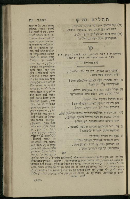 15 (1835) Sefer Tehilim / ʿim Perush Rashi ṿe-targum Ashkenazi me-et Rabenu Mosheh ben Menaḥem n.ʿE., u-veʾur me-et ha-ḥakham ha-mefursam R. Yoʾel Bril asher ḳara be-shem Zemirot Yiśraʾel, ṿe-nilṿeh elaṿ ha-Maʿamar me-et ha-ḥakham ha-medaḳdeḳ mo.h. Ṿolf Meʾir (moreh lashon ʿIvri be-vet ḥinukh ha-normali asher be-Prag), u-ve-tokho nikhlal haʿataḳah u-veʾur le-khol milot be-laʿaz ha-nimtsaʾot be-Fe. Rashi z.l. me-et ha-madpis Mosheh ha-Leṿi Landa15 (1835) ספר תהלים / עם פירוש רש''י ותרגום אשכנזי מאת רבינו משה בן מנחם נ"ע, ובאור מאת החכם המפורסם ר' יואל ברי"ל אשר קרא בשם זמירות ישראל, ונלוה אליו המעמר מאת החכם המדקדק מו"ה וואלף מאיר (מורה לשון עברי בבית חנוך הנארמאלי אשר בפראג), ובתוכו נכלל העתקה ובאור לכל מלות בלע"ז הנמצאות בפירש"י ז"ל מאת המדפיס משה הלוי לנדא