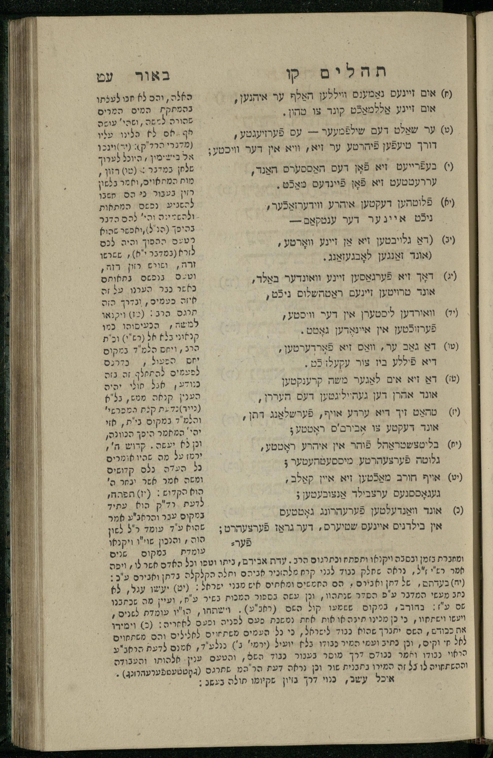 15 (1835) Sefer Tehilim / ʿim Perush Rashi ṿe-targum Ashkenazi me-et Rabenu Mosheh ben Menaḥem n.ʿE., u-veʾur me-et ha-ḥakham ha-mefursam R. Yoʾel Bril asher ḳara be-shem Zemirot Yiśraʾel, ṿe-nilṿeh elaṿ ha-Maʿamar me-et ha-ḥakham ha-medaḳdeḳ mo.h. Ṿolf Meʾir (moreh lashon ʿIvri be-vet ḥinukh ha-normali asher be-Prag), u-ve-tokho nikhlal haʿataḳah u-veʾur le-khol milot be-laʿaz ha-nimtsaʾot be-Fe. Rashi z.l. me-et ha-madpis Mosheh ha-Leṿi Landa15 (1835) ספר תהלים / עם פירוש רש''י ותרגום אשכנזי מאת רבינו משה בן מנחם נ"ע, ובאור מאת החכם המפורסם ר' יואל ברי"ל אשר קרא בשם זמירות ישראל, ונלוה אליו המעמר מאת החכם המדקדק מו"ה וואלף מאיר (מורה לשון עברי בבית חנוך הנארמאלי אשר בפראג), ובתוכו נכלל העתקה ובאור לכל מלות בלע"ז הנמצאות בפירש"י ז"ל מאת המדפיס משה הלוי לנדא