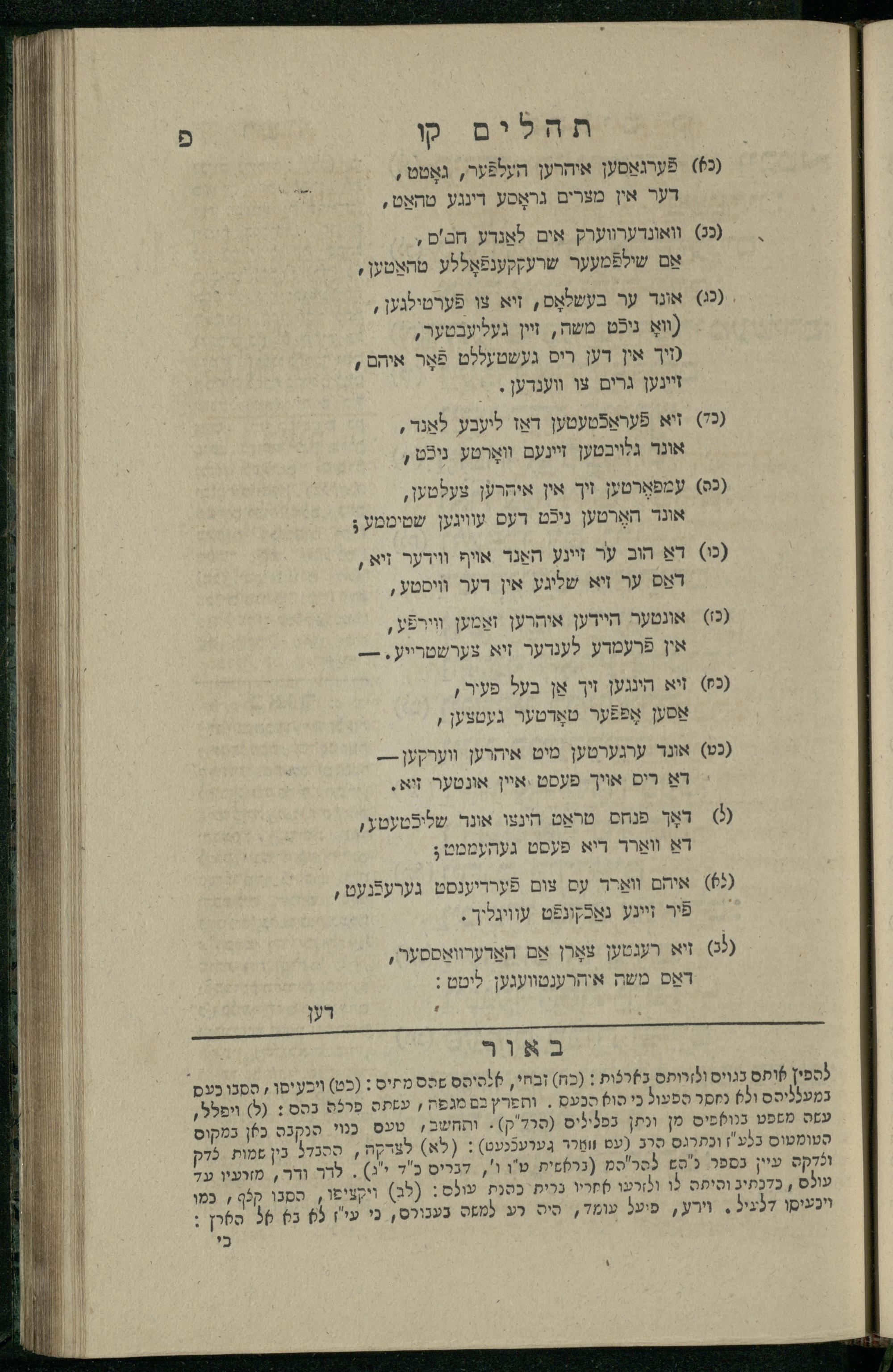 15 (1835) Sefer Tehilim / ʿim Perush Rashi ṿe-targum Ashkenazi me-et Rabenu Mosheh ben Menaḥem n.ʿE., u-veʾur me-et ha-ḥakham ha-mefursam R. Yoʾel Bril asher ḳara be-shem Zemirot Yiśraʾel, ṿe-nilṿeh elaṿ ha-Maʿamar me-et ha-ḥakham ha-medaḳdeḳ mo.h. Ṿolf Meʾir (moreh lashon ʿIvri be-vet ḥinukh ha-normali asher be-Prag), u-ve-tokho nikhlal haʿataḳah u-veʾur le-khol milot be-laʿaz ha-nimtsaʾot be-Fe. Rashi z.l. me-et ha-madpis Mosheh ha-Leṿi Landa15 (1835) ספר תהלים / עם פירוש רש''י ותרגום אשכנזי מאת רבינו משה בן מנחם נ"ע, ובאור מאת החכם המפורסם ר' יואל ברי"ל אשר קרא בשם זמירות ישראל, ונלוה אליו המעמר מאת החכם המדקדק מו"ה וואלף מאיר (מורה לשון עברי בבית חנוך הנארמאלי אשר בפראג), ובתוכו נכלל העתקה ובאור לכל מלות בלע"ז הנמצאות בפירש"י ז"ל מאת המדפיס משה הלוי לנדא