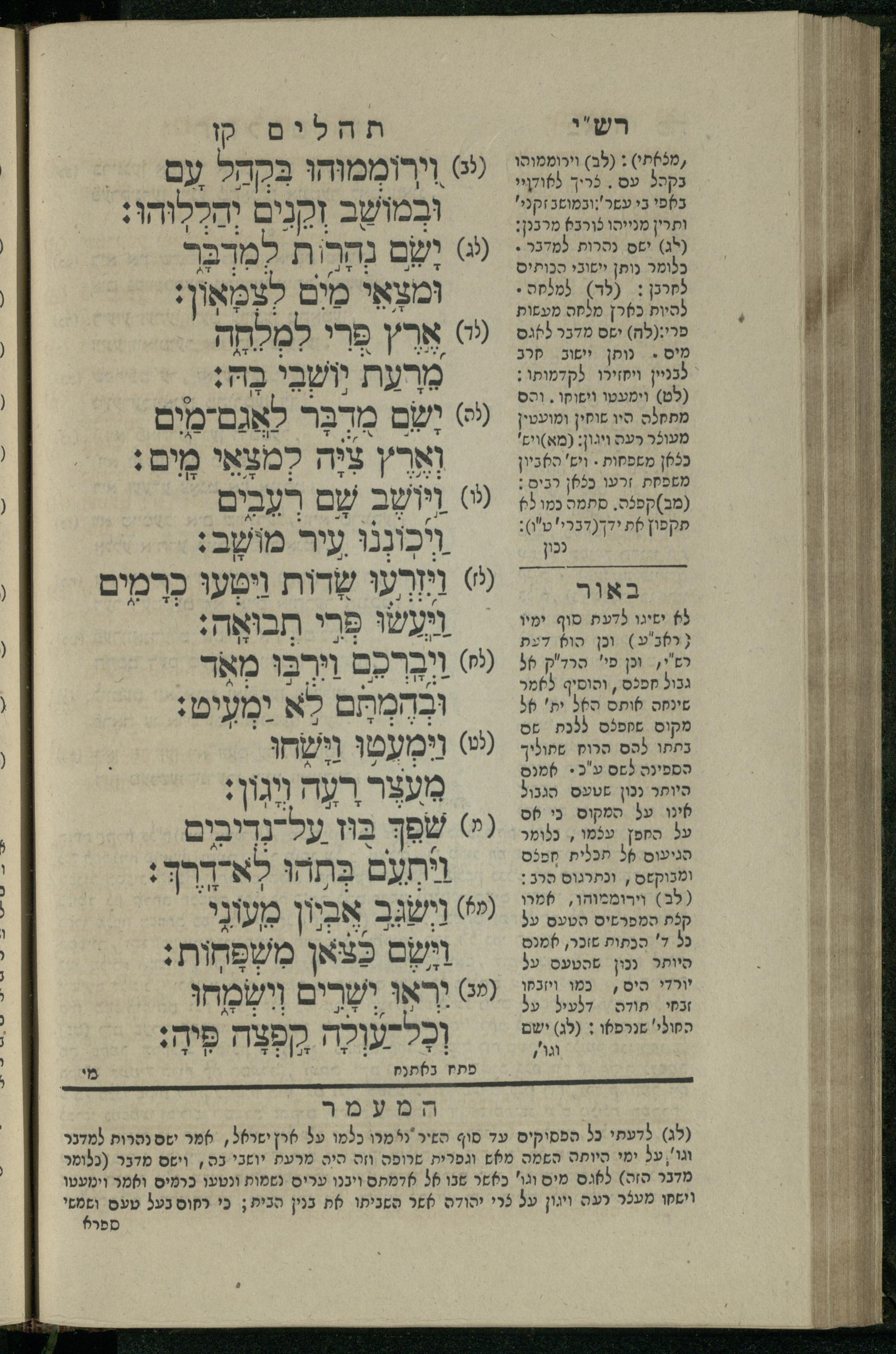 15 (1835) Sefer Tehilim / ʿim Perush Rashi ṿe-targum Ashkenazi me-et Rabenu Mosheh ben Menaḥem n.ʿE., u-veʾur me-et ha-ḥakham ha-mefursam R. Yoʾel Bril asher ḳara be-shem Zemirot Yiśraʾel, ṿe-nilṿeh elaṿ ha-Maʿamar me-et ha-ḥakham ha-medaḳdeḳ mo.h. Ṿolf Meʾir (moreh lashon ʿIvri be-vet ḥinukh ha-normali asher be-Prag), u-ve-tokho nikhlal haʿataḳah u-veʾur le-khol milot be-laʿaz ha-nimtsaʾot be-Fe. Rashi z.l. me-et ha-madpis Mosheh ha-Leṿi Landa15 (1835) ספר תהלים / עם פירוש רש''י ותרגום אשכנזי מאת רבינו משה בן מנחם נ"ע, ובאור מאת החכם המפורסם ר' יואל ברי"ל אשר קרא בשם זמירות ישראל, ונלוה אליו המעמר מאת החכם המדקדק מו"ה וואלף מאיר (מורה לשון עברי בבית חנוך הנארמאלי אשר בפראג), ובתוכו נכלל העתקה ובאור לכל מלות בלע"ז הנמצאות בפירש"י ז"ל מאת המדפיס משה הלוי לנדא
