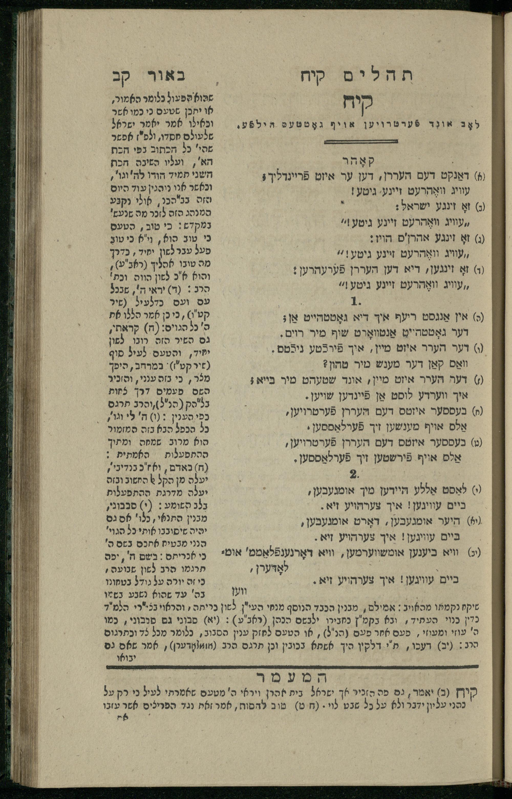 15 (1835) Sefer Tehilim / ʿim Perush Rashi ṿe-targum Ashkenazi me-et Rabenu Mosheh ben Menaḥem n.ʿE., u-veʾur me-et ha-ḥakham ha-mefursam R. Yoʾel Bril asher ḳara be-shem Zemirot Yiśraʾel, ṿe-nilṿeh elaṿ ha-Maʿamar me-et ha-ḥakham ha-medaḳdeḳ mo.h. Ṿolf Meʾir (moreh lashon ʿIvri be-vet ḥinukh ha-normali asher be-Prag), u-ve-tokho nikhlal haʿataḳah u-veʾur le-khol milot be-laʿaz ha-nimtsaʾot be-Fe. Rashi z.l. me-et ha-madpis Mosheh ha-Leṿi Landa15 (1835) ספר תהלים / עם פירוש רש''י ותרגום אשכנזי מאת רבינו משה בן מנחם נ"ע, ובאור מאת החכם המפורסם ר' יואל ברי"ל אשר קרא בשם זמירות ישראל, ונלוה אליו המעמר מאת החכם המדקדק מו"ה וואלף מאיר (מורה לשון עברי בבית חנוך הנארמאלי אשר בפראג), ובתוכו נכלל העתקה ובאור לכל מלות בלע"ז הנמצאות בפירש"י ז"ל מאת המדפיס משה הלוי לנדא