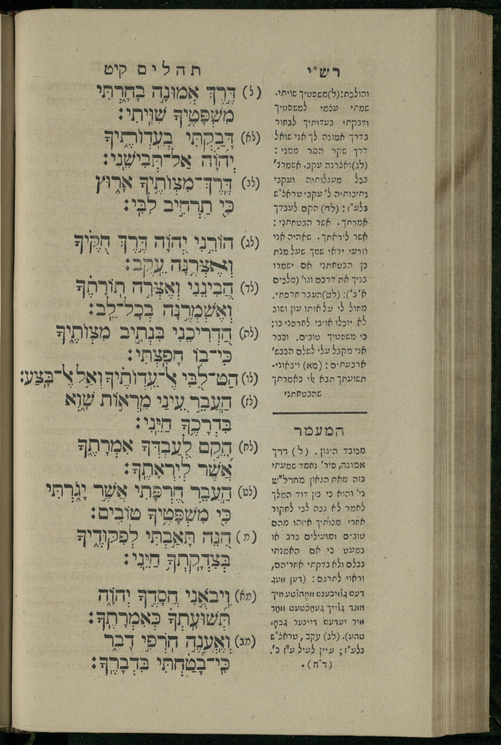 15 (1835) Sefer Tehilim / ʿim Perush Rashi ṿe-targum Ashkenazi me-et Rabenu Mosheh ben Menaḥem n.ʿE., u-veʾur me-et ha-ḥakham ha-mefursam R. Yoʾel Bril asher ḳara be-shem Zemirot Yiśraʾel, ṿe-nilṿeh elaṿ ha-Maʿamar me-et ha-ḥakham ha-medaḳdeḳ mo.h. Ṿolf Meʾir (moreh lashon ʿIvri be-vet ḥinukh ha-normali asher be-Prag), u-ve-tokho nikhlal haʿataḳah u-veʾur le-khol milot be-laʿaz ha-nimtsaʾot be-Fe. Rashi z.l. me-et ha-madpis Mosheh ha-Leṿi Landa15 (1835) ספר תהלים / עם פירוש רש''י ותרגום אשכנזי מאת רבינו משה בן מנחם נ"ע, ובאור מאת החכם המפורסם ר' יואל ברי"ל אשר קרא בשם זמירות ישראל, ונלוה אליו המעמר מאת החכם המדקדק מו"ה וואלף מאיר (מורה לשון עברי בבית חנוך הנארמאלי אשר בפראג), ובתוכו נכלל העתקה ובאור לכל מלות בלע"ז הנמצאות בפירש"י ז"ל מאת המדפיס משה הלוי לנדא