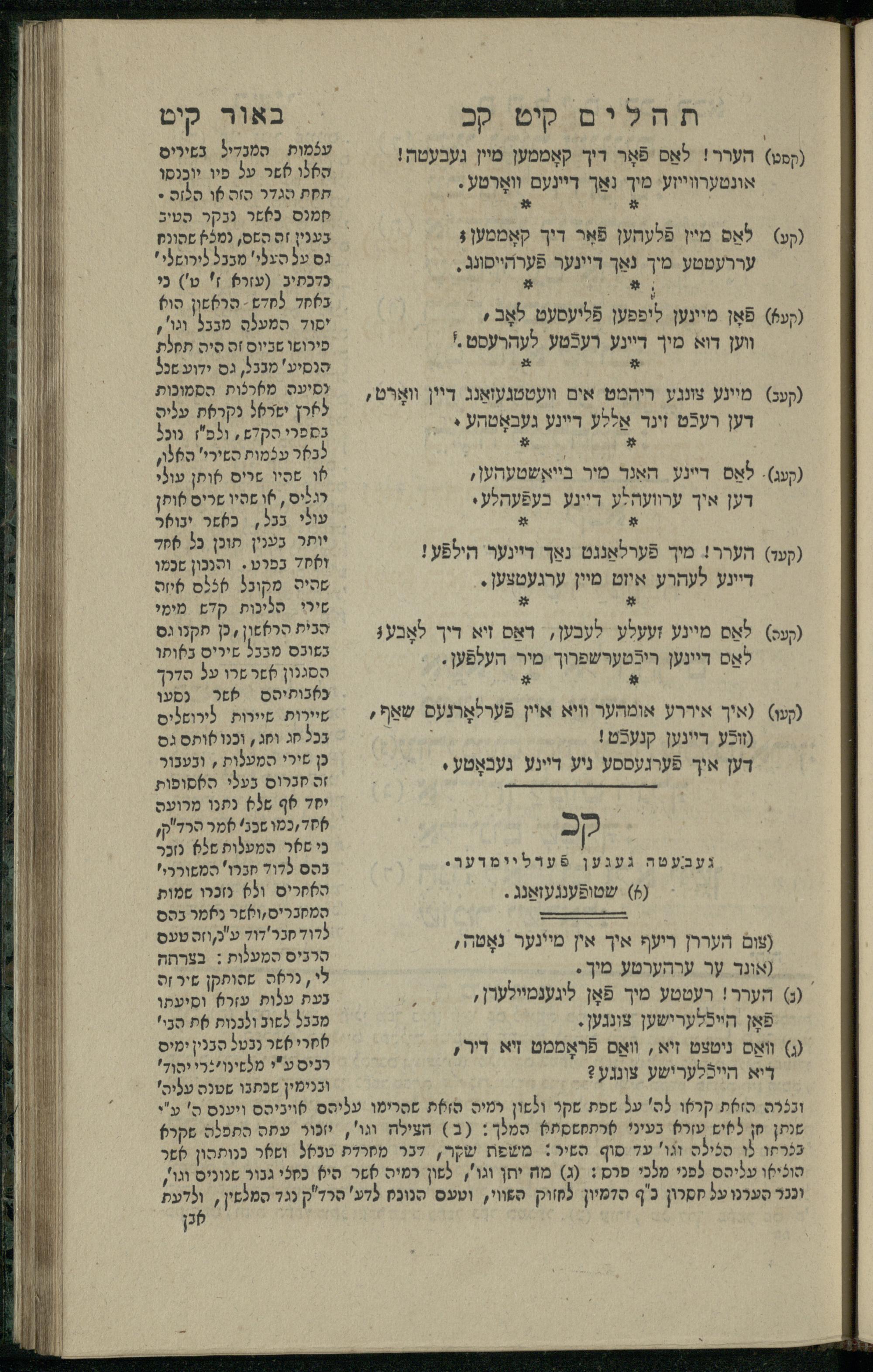 15 (1835) Sefer Tehilim / ʿim Perush Rashi ṿe-targum Ashkenazi me-et Rabenu Mosheh ben Menaḥem n.ʿE., u-veʾur me-et ha-ḥakham ha-mefursam R. Yoʾel Bril asher ḳara be-shem Zemirot Yiśraʾel, ṿe-nilṿeh elaṿ ha-Maʿamar me-et ha-ḥakham ha-medaḳdeḳ mo.h. Ṿolf Meʾir (moreh lashon ʿIvri be-vet ḥinukh ha-normali asher be-Prag), u-ve-tokho nikhlal haʿataḳah u-veʾur le-khol milot be-laʿaz ha-nimtsaʾot be-Fe. Rashi z.l. me-et ha-madpis Mosheh ha-Leṿi Landa15 (1835) ספר תהלים / עם פירוש רש''י ותרגום אשכנזי מאת רבינו משה בן מנחם נ"ע, ובאור מאת החכם המפורסם ר' יואל ברי"ל אשר קרא בשם זמירות ישראל, ונלוה אליו המעמר מאת החכם המדקדק מו"ה וואלף מאיר (מורה לשון עברי בבית חנוך הנארמאלי אשר בפראג), ובתוכו נכלל העתקה ובאור לכל מלות בלע"ז הנמצאות בפירש"י ז"ל מאת המדפיס משה הלוי לנדא