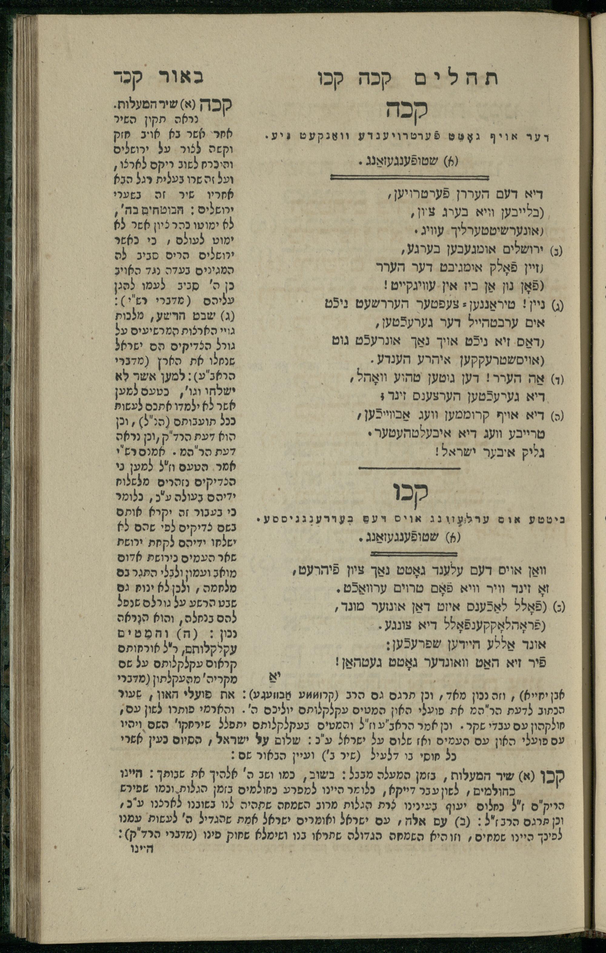 15 (1835) Sefer Tehilim / ʿim Perush Rashi ṿe-targum Ashkenazi me-et Rabenu Mosheh ben Menaḥem n.ʿE., u-veʾur me-et ha-ḥakham ha-mefursam R. Yoʾel Bril asher ḳara be-shem Zemirot Yiśraʾel, ṿe-nilṿeh elaṿ ha-Maʿamar me-et ha-ḥakham ha-medaḳdeḳ mo.h. Ṿolf Meʾir (moreh lashon ʿIvri be-vet ḥinukh ha-normali asher be-Prag), u-ve-tokho nikhlal haʿataḳah u-veʾur le-khol milot be-laʿaz ha-nimtsaʾot be-Fe. Rashi z.l. me-et ha-madpis Mosheh ha-Leṿi Landa15 (1835) ספר תהלים / עם פירוש רש''י ותרגום אשכנזי מאת רבינו משה בן מנחם נ"ע, ובאור מאת החכם המפורסם ר' יואל ברי"ל אשר קרא בשם זמירות ישראל, ונלוה אליו המעמר מאת החכם המדקדק מו"ה וואלף מאיר (מורה לשון עברי בבית חנוך הנארמאלי אשר בפראג), ובתוכו נכלל העתקה ובאור לכל מלות בלע"ז הנמצאות בפירש"י ז"ל מאת המדפיס משה הלוי לנדא