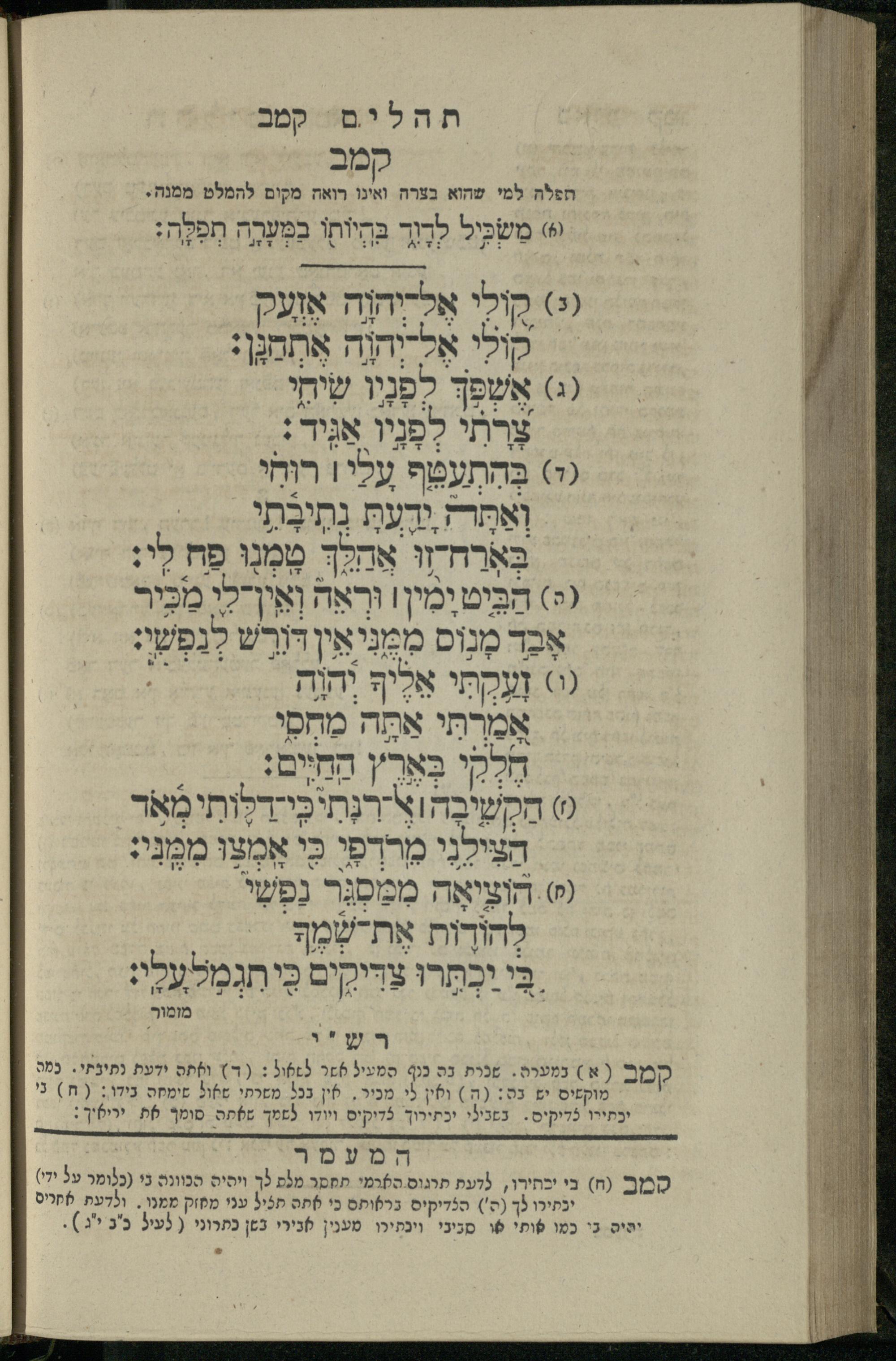 15 (1835) Sefer Tehilim / ʿim Perush Rashi ṿe-targum Ashkenazi me-et Rabenu Mosheh ben Menaḥem n.ʿE., u-veʾur me-et ha-ḥakham ha-mefursam R. Yoʾel Bril asher ḳara be-shem Zemirot Yiśraʾel, ṿe-nilṿeh elaṿ ha-Maʿamar me-et ha-ḥakham ha-medaḳdeḳ mo.h. Ṿolf Meʾir (moreh lashon ʿIvri be-vet ḥinukh ha-normali asher be-Prag), u-ve-tokho nikhlal haʿataḳah u-veʾur le-khol milot be-laʿaz ha-nimtsaʾot be-Fe. Rashi z.l. me-et ha-madpis Mosheh ha-Leṿi Landa15 (1835) ספר תהלים / עם פירוש רש''י ותרגום אשכנזי מאת רבינו משה בן מנחם נ"ע, ובאור מאת החכם המפורסם ר' יואל ברי"ל אשר קרא בשם זמירות ישראל, ונלוה אליו המעמר מאת החכם המדקדק מו"ה וואלף מאיר (מורה לשון עברי בבית חנוך הנארמאלי אשר בפראג), ובתוכו נכלל העתקה ובאור לכל מלות בלע"ז הנמצאות בפירש"י ז"ל מאת המדפיס משה הלוי לנדא