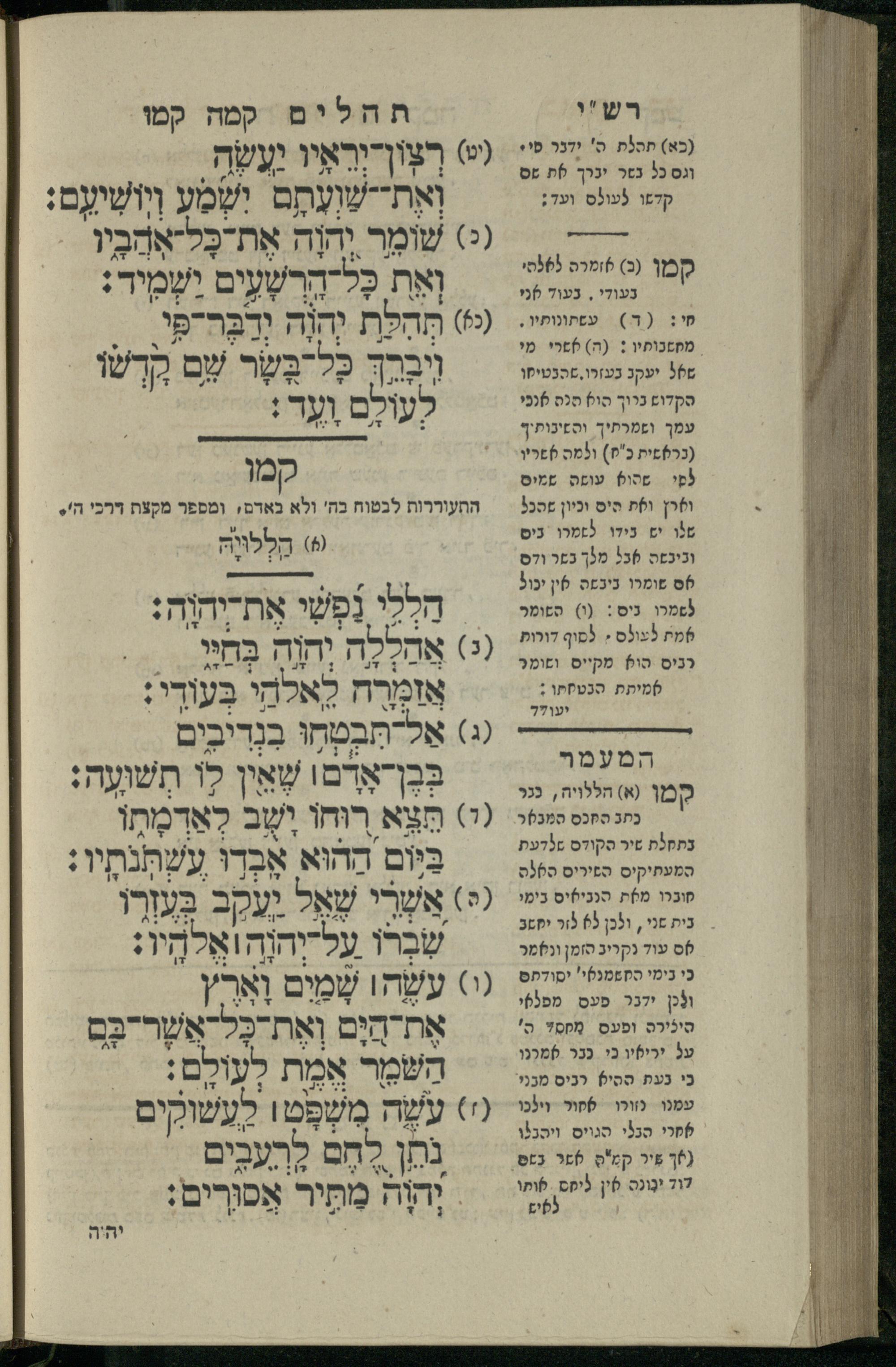 15 (1835) Sefer Tehilim / ʿim Perush Rashi ṿe-targum Ashkenazi me-et Rabenu Mosheh ben Menaḥem n.ʿE., u-veʾur me-et ha-ḥakham ha-mefursam R. Yoʾel Bril asher ḳara be-shem Zemirot Yiśraʾel, ṿe-nilṿeh elaṿ ha-Maʿamar me-et ha-ḥakham ha-medaḳdeḳ mo.h. Ṿolf Meʾir (moreh lashon ʿIvri be-vet ḥinukh ha-normali asher be-Prag), u-ve-tokho nikhlal haʿataḳah u-veʾur le-khol milot be-laʿaz ha-nimtsaʾot be-Fe. Rashi z.l. me-et ha-madpis Mosheh ha-Leṿi Landa15 (1835) ספר תהלים / עם פירוש רש''י ותרגום אשכנזי מאת רבינו משה בן מנחם נ"ע, ובאור מאת החכם המפורסם ר' יואל ברי"ל אשר קרא בשם זמירות ישראל, ונלוה אליו המעמר מאת החכם המדקדק מו"ה וואלף מאיר (מורה לשון עברי בבית חנוך הנארמאלי אשר בפראג), ובתוכו נכלל העתקה ובאור לכל מלות בלע"ז הנמצאות בפירש"י ז"ל מאת המדפיס משה הלוי לנדא