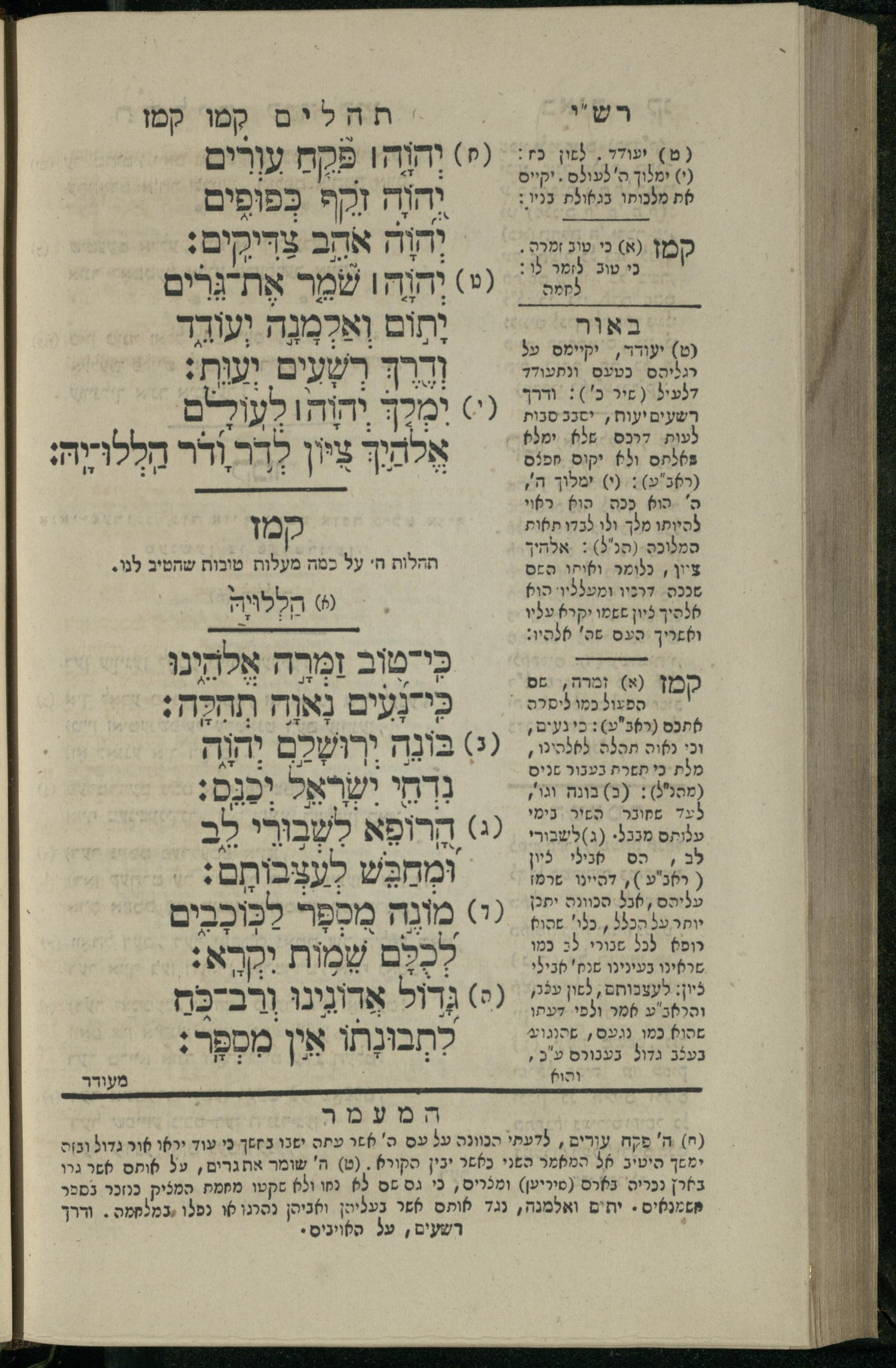 15 (1835) Sefer Tehilim / ʿim Perush Rashi ṿe-targum Ashkenazi me-et Rabenu Mosheh ben Menaḥem n.ʿE., u-veʾur me-et ha-ḥakham ha-mefursam R. Yoʾel Bril asher ḳara be-shem Zemirot Yiśraʾel, ṿe-nilṿeh elaṿ ha-Maʿamar me-et ha-ḥakham ha-medaḳdeḳ mo.h. Ṿolf Meʾir (moreh lashon ʿIvri be-vet ḥinukh ha-normali asher be-Prag), u-ve-tokho nikhlal haʿataḳah u-veʾur le-khol milot be-laʿaz ha-nimtsaʾot be-Fe. Rashi z.l. me-et ha-madpis Mosheh ha-Leṿi Landa15 (1835) ספר תהלים / עם פירוש רש''י ותרגום אשכנזי מאת רבינו משה בן מנחם נ"ע, ובאור מאת החכם המפורסם ר' יואל ברי"ל אשר קרא בשם זמירות ישראל, ונלוה אליו המעמר מאת החכם המדקדק מו"ה וואלף מאיר (מורה לשון עברי בבית חנוך הנארמאלי אשר בפראג), ובתוכו נכלל העתקה ובאור לכל מלות בלע"ז הנמצאות בפירש"י ז"ל מאת המדפיס משה הלוי לנדא