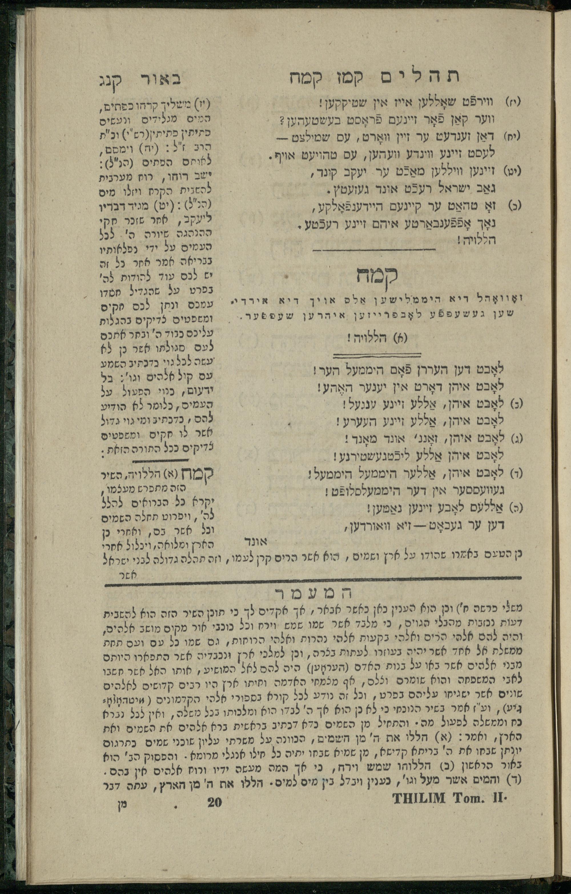 15 (1835) Sefer Tehilim / ʿim Perush Rashi ṿe-targum Ashkenazi me-et Rabenu Mosheh ben Menaḥem n.ʿE., u-veʾur me-et ha-ḥakham ha-mefursam R. Yoʾel Bril asher ḳara be-shem Zemirot Yiśraʾel, ṿe-nilṿeh elaṿ ha-Maʿamar me-et ha-ḥakham ha-medaḳdeḳ mo.h. Ṿolf Meʾir (moreh lashon ʿIvri be-vet ḥinukh ha-normali asher be-Prag), u-ve-tokho nikhlal haʿataḳah u-veʾur le-khol milot be-laʿaz ha-nimtsaʾot be-Fe. Rashi z.l. me-et ha-madpis Mosheh ha-Leṿi Landa15 (1835) ספר תהלים / עם פירוש רש''י ותרגום אשכנזי מאת רבינו משה בן מנחם נ"ע, ובאור מאת החכם המפורסם ר' יואל ברי"ל אשר קרא בשם זמירות ישראל, ונלוה אליו המעמר מאת החכם המדקדק מו"ה וואלף מאיר (מורה לשון עברי בבית חנוך הנארמאלי אשר בפראג), ובתוכו נכלל העתקה ובאור לכל מלות בלע"ז הנמצאות בפירש"י ז"ל מאת המדפיס משה הלוי לנדא