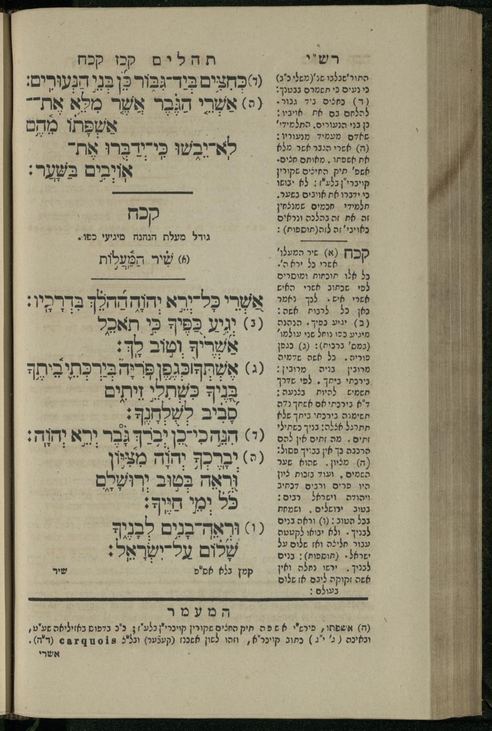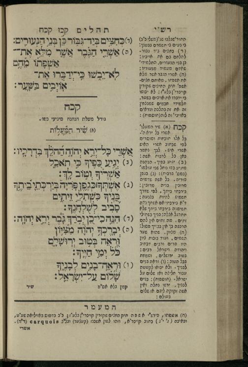15 (1835) Sefer Tehilim / ʿim Perush Rashi ṿe-targum Ashkenazi me-et Rabenu Mosheh ben Menaḥem n.ʿE., u-veʾur me-et ha-ḥakham ha-mefursam R. Yoʾel Bril asher ḳara be-shem Zemirot Yiśraʾel, ṿe-nilṿeh elaṿ ha-Maʿamar me-et ha-ḥakham ha-medaḳdeḳ mo.h. Ṿolf Meʾir (moreh lashon ʿIvri be-vet ḥinukh ha-normali asher be-Prag), u-ve-tokho nikhlal haʿataḳah u-veʾur le-khol milot be-laʿaz ha-nimtsaʾot be-Fe. Rashi z.l. me-et ha-madpis Mosheh ha-Leṿi Landa15 (1835) ספר תהלים / עם פירוש רש''י ותרגום אשכנזי מאת רבינו משה בן מנחם נ"ע, ובאור מאת החכם המפורסם ר' יואל ברי"ל אשר קרא בשם זמירות ישראל, ונלוה אליו המעמר מאת החכם המדקדק מו"ה וואלף מאיר (מורה לשון עברי בבית חנוך הנארמאלי אשר בפראג), ובתוכו נכלל העתקה ובאור לכל מלות בלע"ז הנמצאות בפירש"י ז"ל מאת המדפיס משה הלוי לנדא