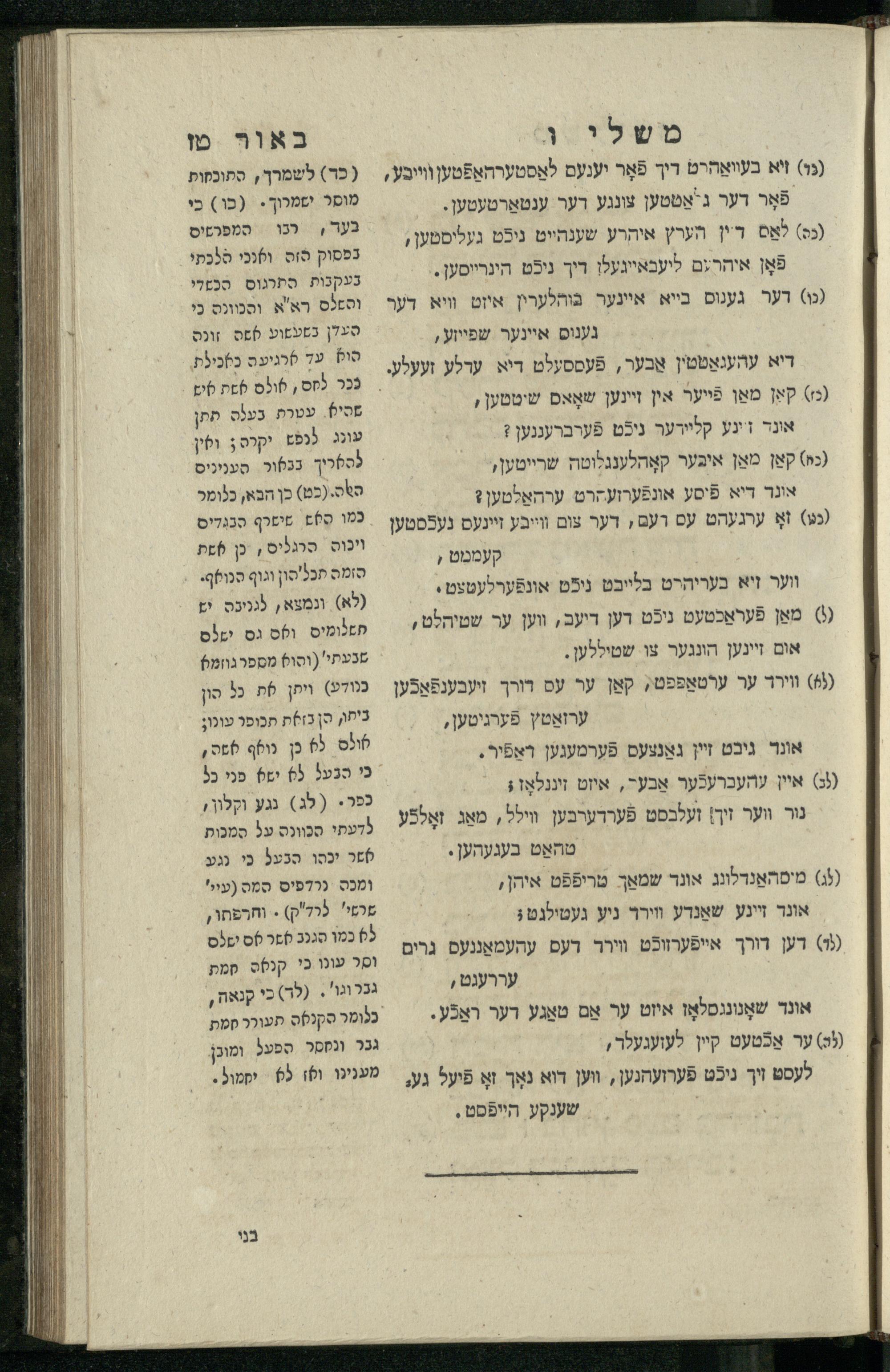 16 (1834) Mishle / meturgam u-mevoʾar ʿal pi ha-mefarshim ṿe-ha-maʿatiḳim ha-rishonim ṿe-gam aḥaronim u-ve-mesilah asher darakh bah ha-ḥakham ha-shalem R. Itsaḳ Aikhel, hukhan me-et ha-khaḥam ha-medaḳdeḳ m.v.h.r.r. Ṿolf Meʾir, moreh lashon ʿIvri be-vet ḥinukh ha-normali asher be-Prag, ṿe-nilṿeh elaṿ Perush Rashi ṿe-haʿtaḳat kol milot be-laʿaz me-et ha-madpis Mosheh ha-Leṿi Landa16 (1834) ספר תהלים / מתורגם ובמואר על פי המפרשים והמעתיקים הראשונים וגם אחרונים ובמסילה אשר דרך בה החכם השלם ר׳ איצק אייכעל, הוכן מאת החכם המדקדק מוהר״ר וואלף מאיר (מורה לשון עברי בבית חנוך הנארמאלי אשר בפראג), ונלוה אליו פירוש רש״י והעתקת כל מלות בלע״ז מאת המדפיס משה הלוי לנדא